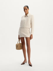 يُعتبر هذا الجاكيت نسخة مينيمالية عن التصاميم الكلاسيكية وهو مصنوع من القطن النافر البارز. يأتي بسحاب عذب وقصة أنيقة ويُعتبر قطعة مريحة لتنسيقها مع مختلف القطع. يمكن تنسيقه مع التنورة المطابقة من المجموعة.