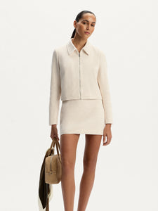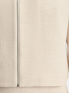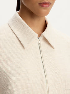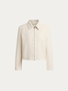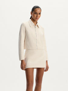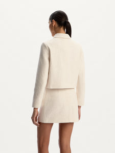يُعتبر هذا الجاكيت نسخة مينيمالية عن التصاميم الكلاسيكية وهو مصنوع من القطن النافر البارز. يأتي بسحاب عذب وقصة أنيقة ويُعتبر قطعة مريحة لتنسيقها مع مختلف القطع. يمكن تنسيقه مع التنورة المطابقة من المجموعة.