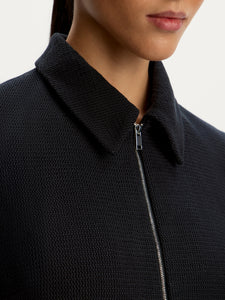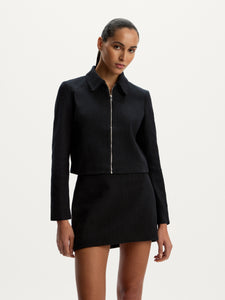 يُعتبر هذا الجاكيت نسخة مينيمالية عن التصاميم الكلاسيكية وهو مصنوع من القطن النافر البارز. يأتي بسحاب عذب وقصة أنيقة ويُعتبر قطعة مريحة لتنسيقها مع مختلف القطع. يمكن تنسيقه مع التنورة المطابقة من المجموعة.