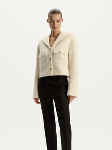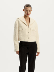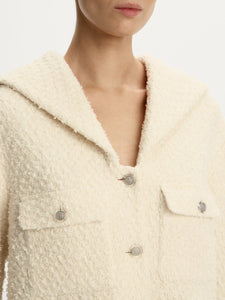 صُنع هذا البليزر من قماش التويد واللوريكس اللامع، ما يجعله مثاليًا للمناسبات المميزة. يتميز بياقة عريضة مستوحاة من الطابع الجمالي لحياة البحرية. يأتي بصوف معزز لتشعري بالراحة والدفء. يمكن تنسيقه مع بنطال رسمي وبنطال جينز وتنورة من المجموعة.