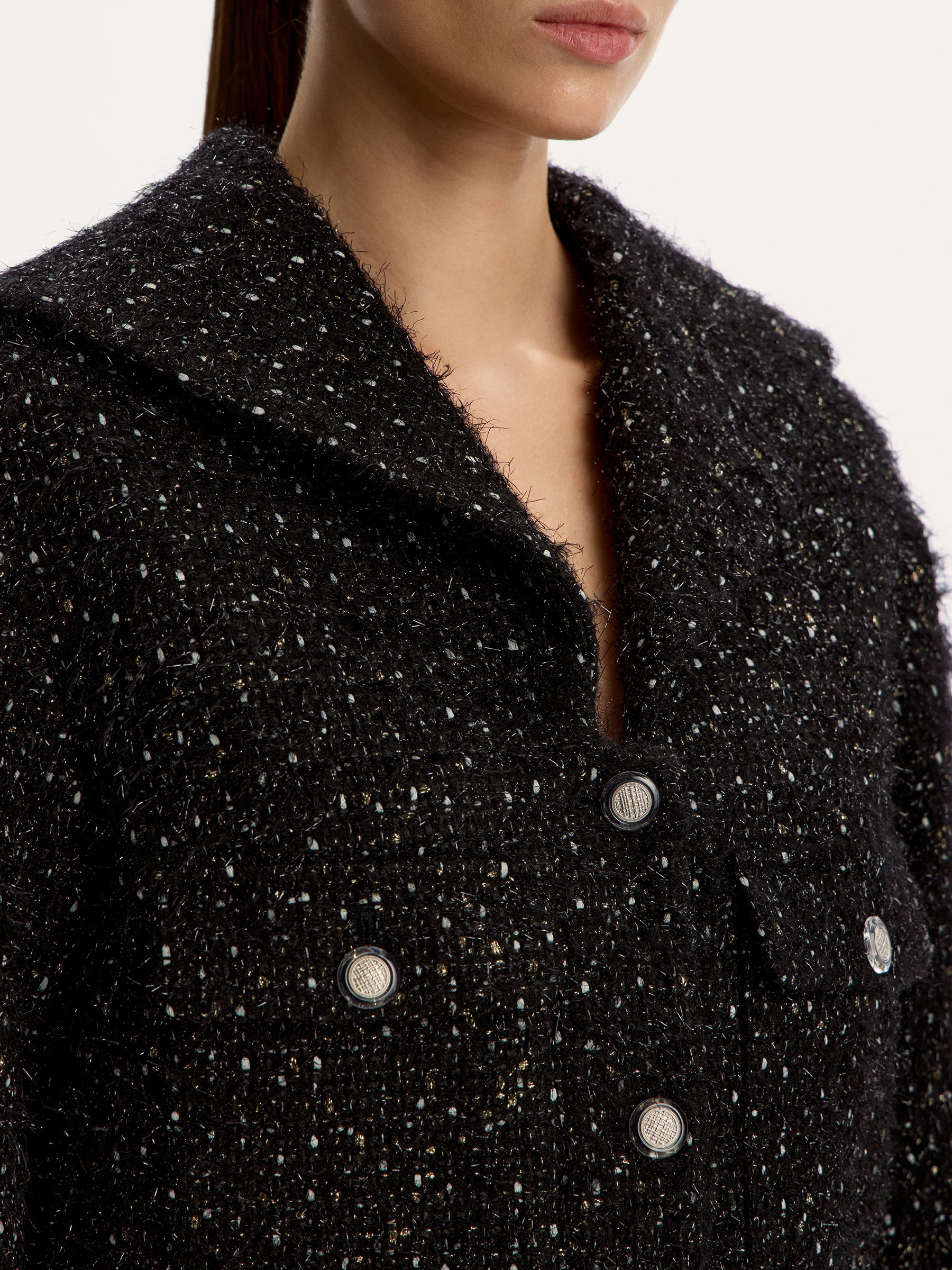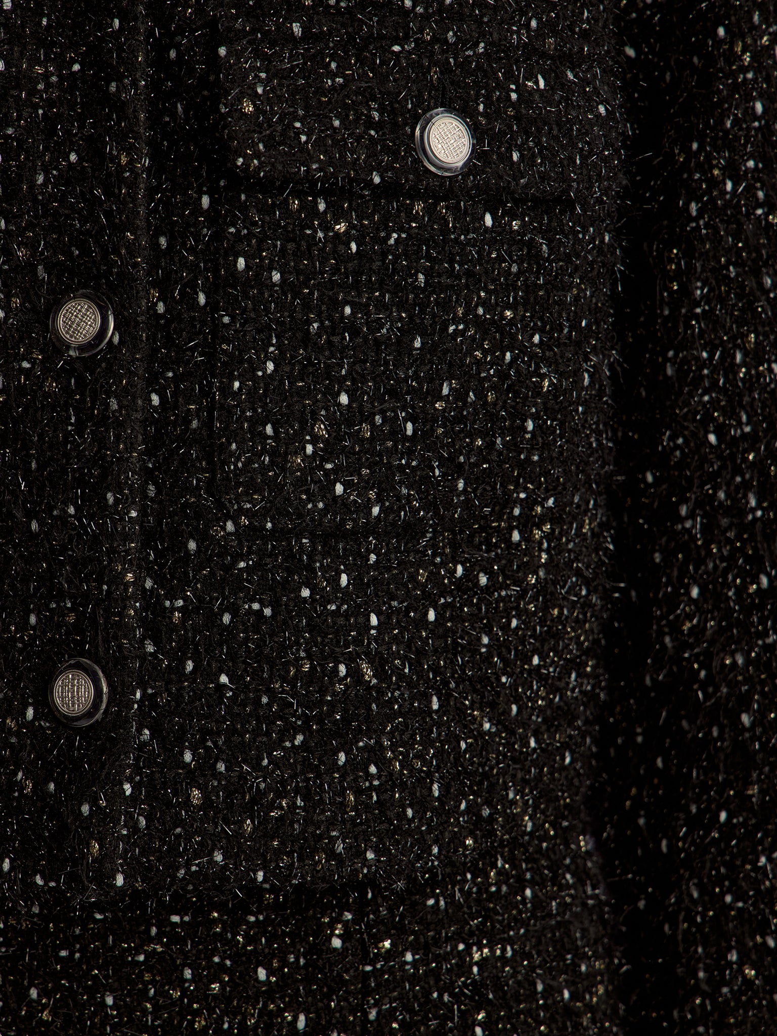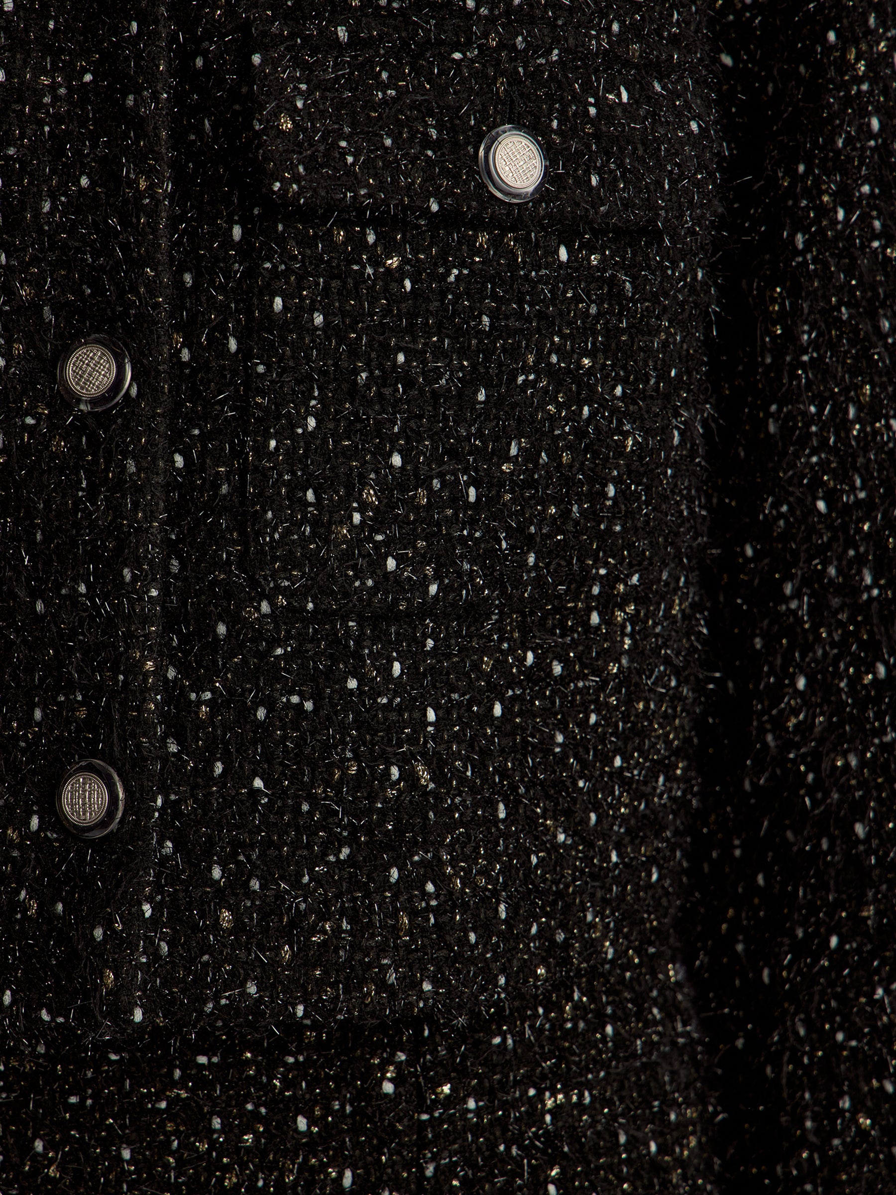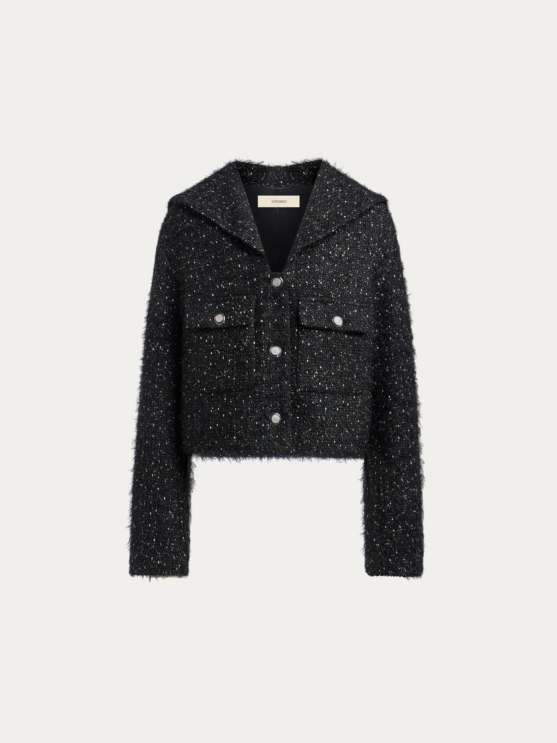 صُنع هذا البليزر من قماش التويد واللوريكس اللامع، ما يجعله مثاليًا للمناسبات المميزة. يتميز بياقة عريضة مستوحاة من الطابع الجمالي لحياة البحرية. يأتي بصوف معزز لتشعري بالراحة والدفء. يمكن تنسيقه مع بنطال رسمي وبنطال جينز وتنورة من المجموعة.