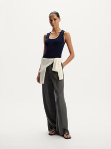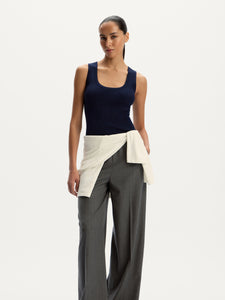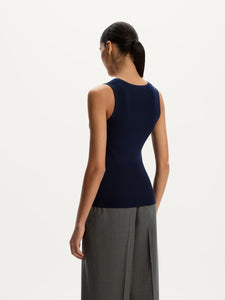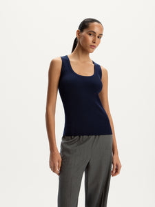 تُعتبر هذه البلوزة بدون أكمام قطعة أساسية في خزانة الملابس وتتميز بلمسة مرموقة وهي محبوكة من مزيج ناعم من الفيسكوز واللايوسيل وتأتي بلمسة من الحرير للتنعم بقوام لامع عذب وإنها معززة بالبولي أميد لتعزيز المتانة. صُممت بياقة دائرية وفتحة عالية من الخلف لسهولة تنسيقها أسفل البليزرات وللإطلالات المسائية.