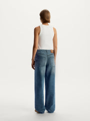 يُعتبر بنطال الجينز هذا قطعة كلاسيكية لا يحدها زمن فقد صُمم بقصة كلاسيكية واسعة عند الساقين وخصر عالٍ وخمسة جيوب. صُنع من القطن التجديدي بوزن 14.5 أونصة ويأتي بصباغة إنديغو فلو، التي تستهلك مياه أقل بنسبة 17% وتقلل انبعاثات ثاني أكسيد الكربون بنسبة 53%.