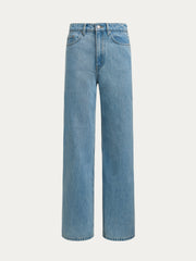 يُعتبر بنطال الجينز هذا قطعة خالدة لا يحدها زمن، إذ صُمم بخمسة جيوب كلاسيكية وقصة واسعة عند الساقين. صُنع من الدنيم بوزن 13.5 أونصة بتأثير مغسول بالحجر للتنعم بقوام يبدو أكثر طولاً. يمكن تنسيقه مع حذاء بكعب عالٍ لتعزيز طول الساقين والتألق.