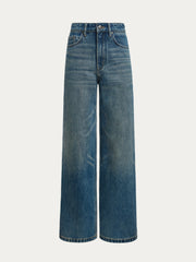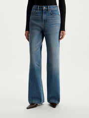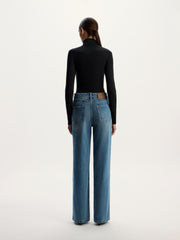 يُعتبر بنطال الجينز هذا قطعة خالدة لا يحدها زمن، إذ صُمم بخمسة جيوب كلاسيكية وقصة واسعة عند الساقين. صُنع من الدنيم بوزن 13.5 أونصة بتأثير مغسول بالحجر للتنعم بقوام يبدو أكثر طولاً. يمكن تنسيقه مع حذاء بكعب عالٍ لتعزيز طول الساقين والتألق.