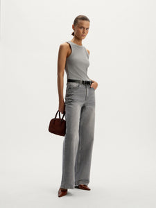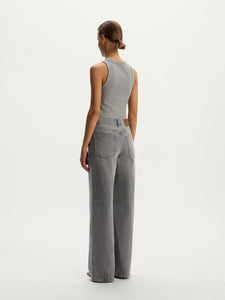 يُعتبر بنطال الجينز هذا قطعة كلاسيكية لا يحدها زمن، فقد صُمم بقصة كلاسيكية واسعة عند الساقين وبخصر عالٍ وخمسة جيوب. صُنع من الدنيم بوزن 13.5 أونصة ويأتي بلون رمادي سهل التنسيق ويُعتبر قطعة يومية بامتياز.