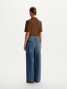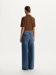 يُعتبر بنطال الجينز هذا قطعة كلاسيكية لا يحدها زمن فقد صُمم بقصة كلاسيكية واسعة عند الساقين وخصر عالٍ وخمسة جيوب. صُنع من القطن التجديدي بوزن 14.5 أونصة ويأتي بصباغة إنديغو فلو، التي تستهلك مياه أقل بنسبة 17% وتقلل انبعاثات ثاني أكسيد الكربون بنسبة 53%.