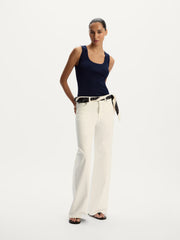 يُعتبر بنطال الجينز هذا قطعة كلاسيكية لا يحدها زمن فقد صُمم بقصة كلاسيكية واسعة عند الساقين وخصر عالٍ وخمسة جيوب. صُنع من القطن التجديدي بوزن 14.5 أونصة ويأتي بصباغة إنديغو فلو، التي تستهلك مياه أقل بنسبة 17% وتقلل انبعاثات ثاني أكسيد الكربون بنسبة 53%.