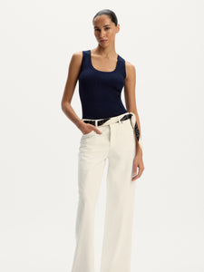 يُعتبر بنطال الجينز هذا قطعة كلاسيكية لا يحدها زمن فقد صُمم بقصة كلاسيكية واسعة عند الساقين وخصر عالٍ وخمسة جيوب. صُنع من القطن التجديدي بوزن 14.5 أونصة ويأتي بصباغة إنديغو فلو، التي تستهلك مياه أقل بنسبة 17% وتقلل انبعاثات ثاني أكسيد الكربون بنسبة 53%.