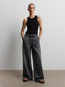 يُعتبر بنطال الجينز هذا قطعة مثالية للأيام الصيفية وهو مصنوع من الدنيم خفيف الوزن والناعم وقد صُمم بقصة واسعة عند الساقين. صُمم بخصر منخفض مريح وأربطة شد لتعديل المقاس بكل حرية. يأتي بلون أزرق فاتح يسهل تنسيقه بأكثر من طريقة ليتماشى مع جميع الإطلالات.