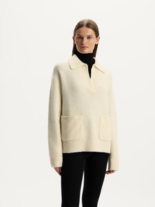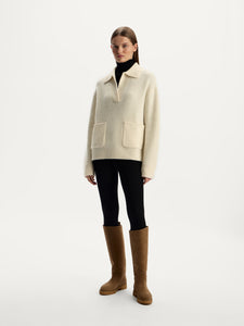 تُعتبر هذه الكنزة بديلاً رائعًا للبلوزات بياقة دائرية كلاسيكية وقد صُممت بقصة واسعة وياقة بشكل حرف V وجيوب مربعة. صُنعت من مزيج صوف الياك الكلاسيكي لتعزيز الدفء وتأتي بإضافة رائعة من البولي أميد للحماية من التمدد.