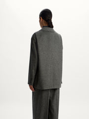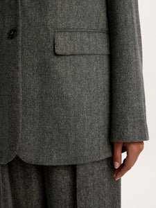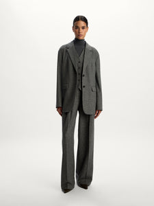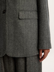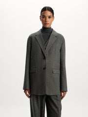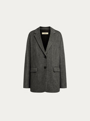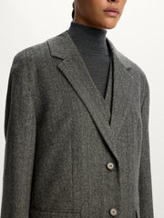 يجسد هذا البليزر قطعة أنيقة بلمسة دافئة عذبة بكل رونق وهو مصنوع من مزيج صوف المارينو والكشمير ويتميز بصف من الأزرار وأكتاف عذبة. يمكن تنسيقه مع التنورة أو الفيست أو البنطال المطابق من المجموعة لإطلالة متكاملة.