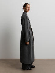 Made from cosy merino and cashmere, this coat features a subtly relaxed fit with roomy kimono sleeves, leaving plenty of space for layering chunky knits underneath. With its double-face design, you’ll be tempted to wear it unbelted to showcase the coat’s interior. Finished with leather details on the belt and pockets for an elegant touch.