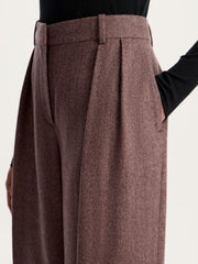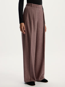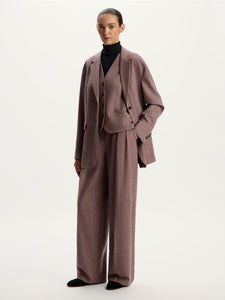 يُعتبر هذا البنطال قطعة مصقولة تتماشى مع جميع الإطلالات وقد صُمم بقصة مستقيمة عند الساقين ويزدان بكسرات محددة عند الخصر المريح. صُنع من مزيج صوف المارينو والكشمير لتعزيز الدفء والطابع الأنيق على حد سواء. يمكن تنسيقه مع البليزر والفيست المطابق من المجموعة.