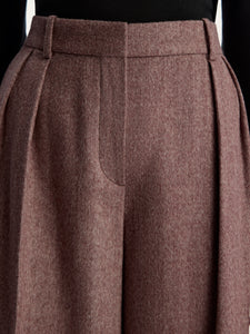 يُعتبر هذا البنطال قطعة مصقولة تتماشى مع جميع الإطلالات وقد صُمم بقصة مستقيمة عند الساقين ويزدان بكسرات محددة عند الخصر المريح. صُنع من مزيج صوف المارينو والكشمير لتعزيز الدفء والطابع الأنيق على حد سواء. يمكن تنسيقه مع البليزر والفيست المطابق من المجموعة.