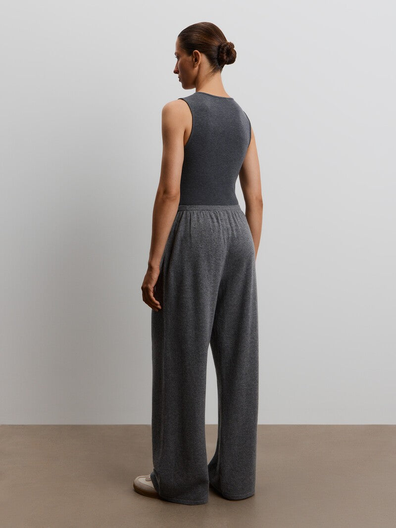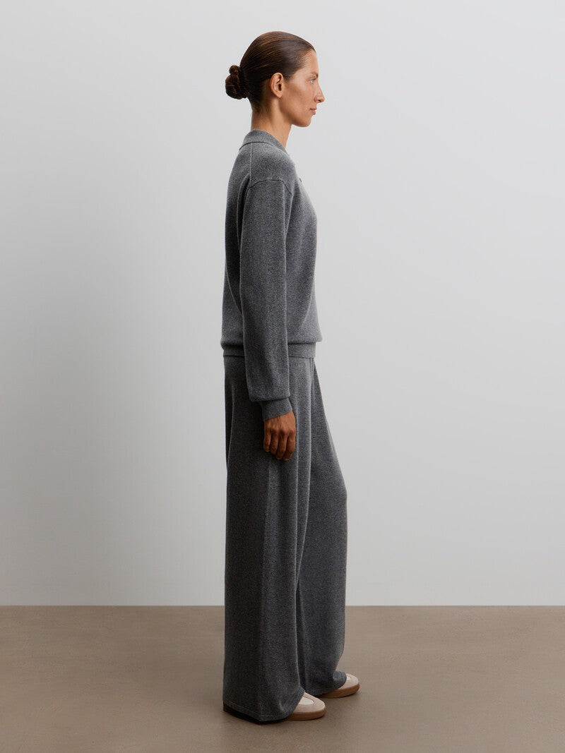 Designed with comfort in mind, these trousers feature a wide-leg silhouette with an elasticated waist. The blend of merino wool and soft cashmere wraps you in warmth and softness, while the relaxed fit helps prevent stretching at the knees. Complete the set with the matching 12 STOREEZ jumper.