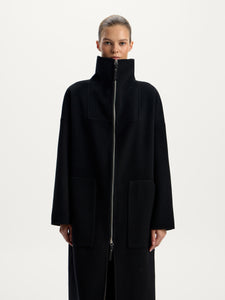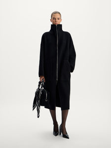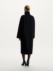 يُعتبر هذا المعطف قطعة أنيقة واقية من عوامل الطقس للإطلالات في المدينة وهو مصنوع من الكشمير وصوف المارينو وقد صُمم بقصة واسعة وأكمام عريضة. يأتي بتقنية مزدوجة الجوانب لقوام ناعم ويتميز بدرزات مصقولة من الجانبين، ما يغنيك عن البطانة.