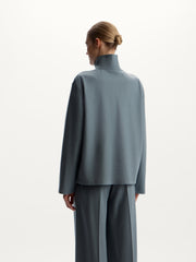 يُعتبر هذا السويت شيرت قطعة أساسية أنيقة وقد صُمم بقصة فضفاضة وياقة عالية وهو مصنوع من مزيج الصوف والنايلون المتين والناعم. يأتي بحياكة متداخلة لحماية الخامات من التمدد وللحفاظ على شكله وقصته المحددة. يمكن تنسيقه مع البنطال المطابق من المجموعة لإطلالة متكاملة.