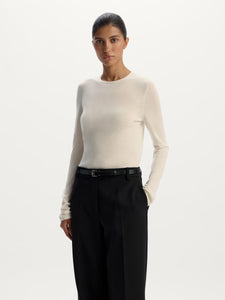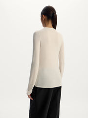 صُنعت هذه الكنزة من مزيج فاخر من صوف المارينو والحرير والكشمير وقد صُممت بقصة انسيابية وتدمج بشكل مثالي ما بين الراحة والأناقة ويمكن تنسيقها بأكثر من طريقة. تتماشى للغاية مع ملابس داخلية متناغمة لإطلالة مثالية.