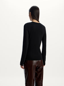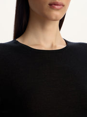 صُنعت هذه الكنزة من مزيج فاخر من صوف المارينو والحرير والكشمير وقد صُممت بقصة انسيابية وتدمج بشكل مثالي ما بين الراحة والأناقة ويمكن تنسيقها بأكثر من طريقة. تتماشى للغاية مع ملابس داخلية متناغمة لإطلالة مثالية.