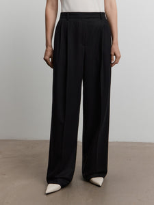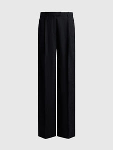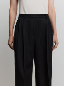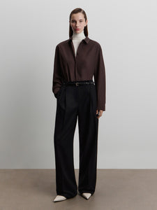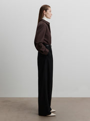 Classic and cosy, these trousers feature pleats, pressed creases, and a corset-style waistband. Tailored from fine wool blended with silk, they’re treated for a soft flannel texture and an exceptionally gentle feel.