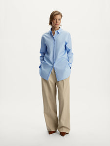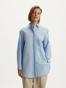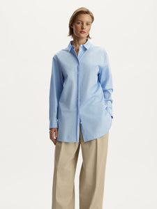 A contemporary wardrobe staple. this shirt is crafted from durable organic cotton with a subtle sheen. made by Italy's renowned Albini mill. Its fuss-free. elongated silhouette works well on its own or layered over T-shirts and tank tops.