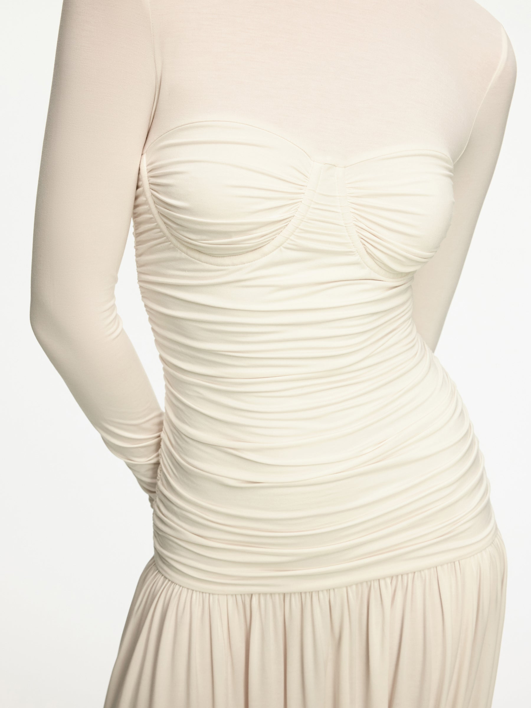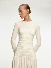 1. Soft, lightweight knit hugs the body, while built-in cups with boning and lining provide support