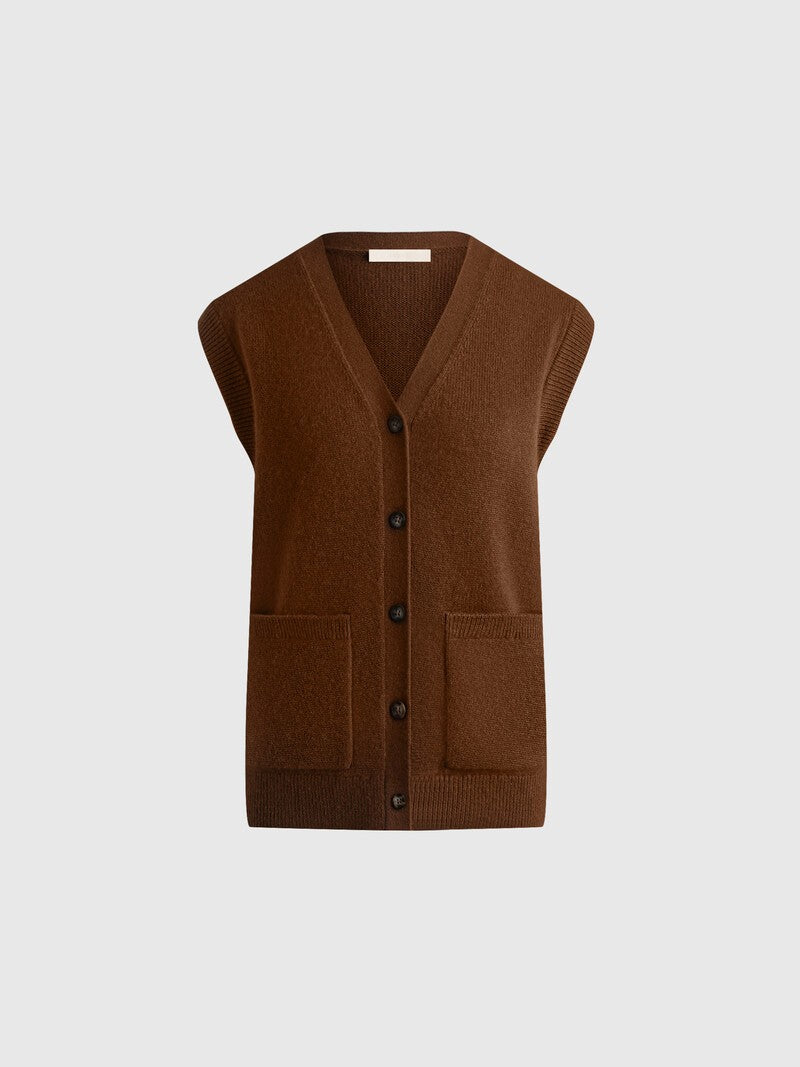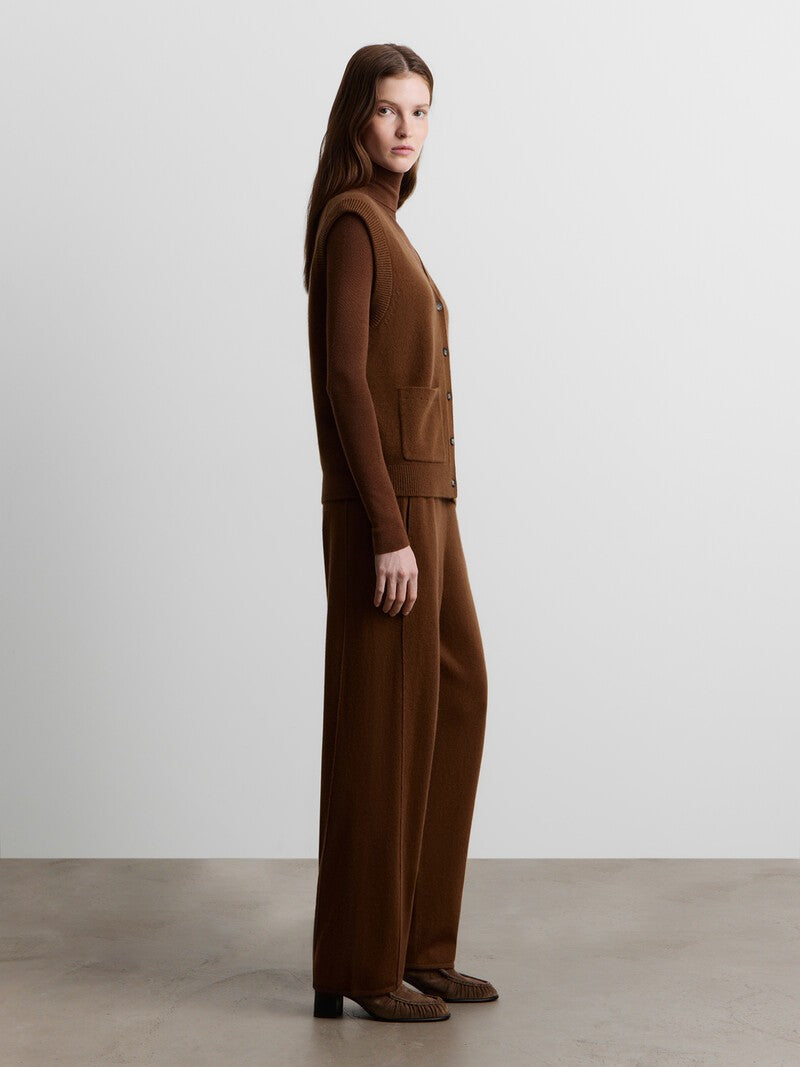 With a hint of vintage and a subtle masculine feel, this vest is knitted in two strands of soft Mongolian cashmere. The relaxed fit and warm, lightweight texture make it a comforting choice for cold days. Complete the set with the matching 12 STOREEZ trousers.
