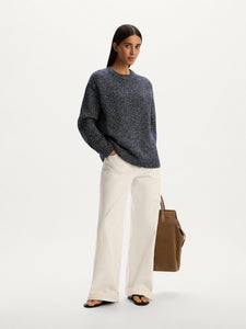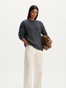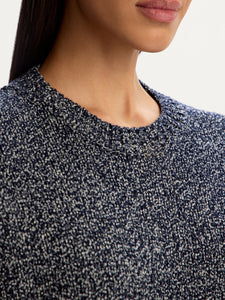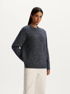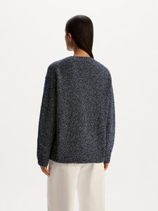 A relaxed essential with a textured twist, this jumper is crafted from yarns of varied density and colour. Crafted from organic cotton with wool and synthetics, it has a pleasantly weighty feel without being too warm. The roomy straight silhouette, dropped shoulders, and ribbed trims make it easy to style.