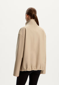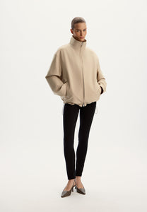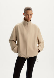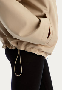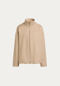 A versatile outer layer, this bomber jacket is crafted from Italian mercerised Pima cotton with a smooth texture and subtle sheen. Lightweight yet structured, it features a minimalist silhouette with welt pockets and a drawstring hem for an adjustable fit. Practical thanks to the addition of elastane and a water-repellent finish, it is fully lined with poly-viscose for comfort.