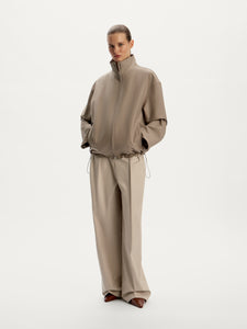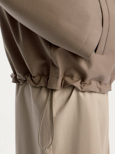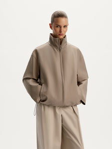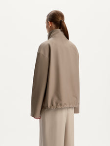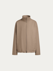 A versatile outer layer, this bomber jacket is crafted from Italian mercerised Pima cotton with a smooth texture and subtle sheen. Lightweight yet structured, it features a minimalist silhouette with welt pockets and a drawstring hem for an adjustable fit. Practical thanks to the addition of elastane and a water-repellent finish, it is fully lined with poly-viscose for comfort.