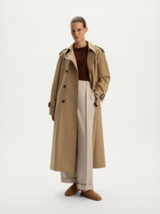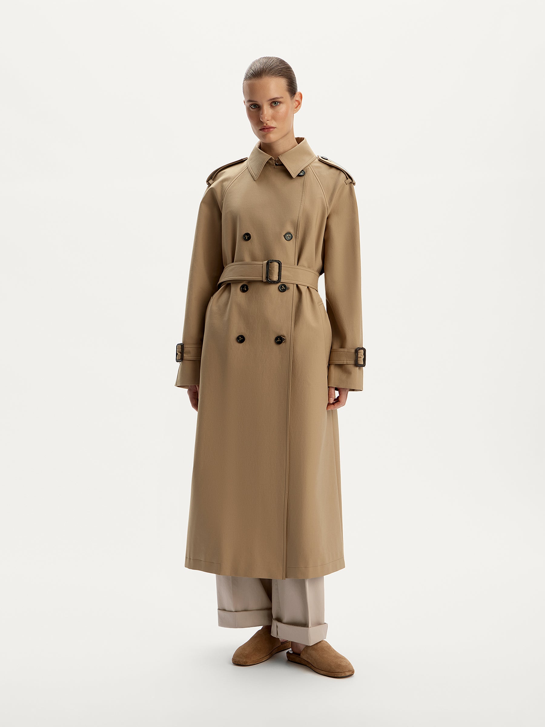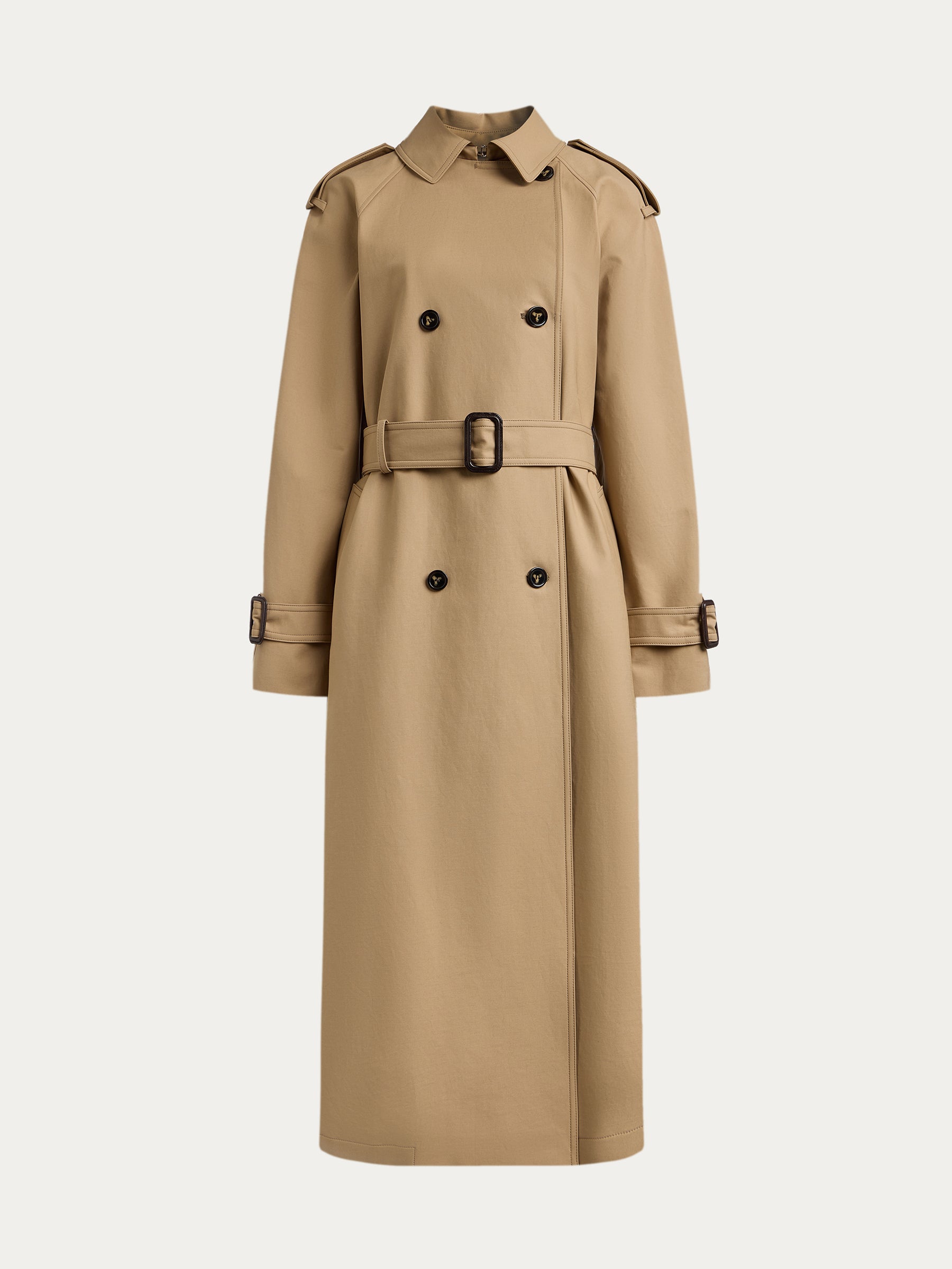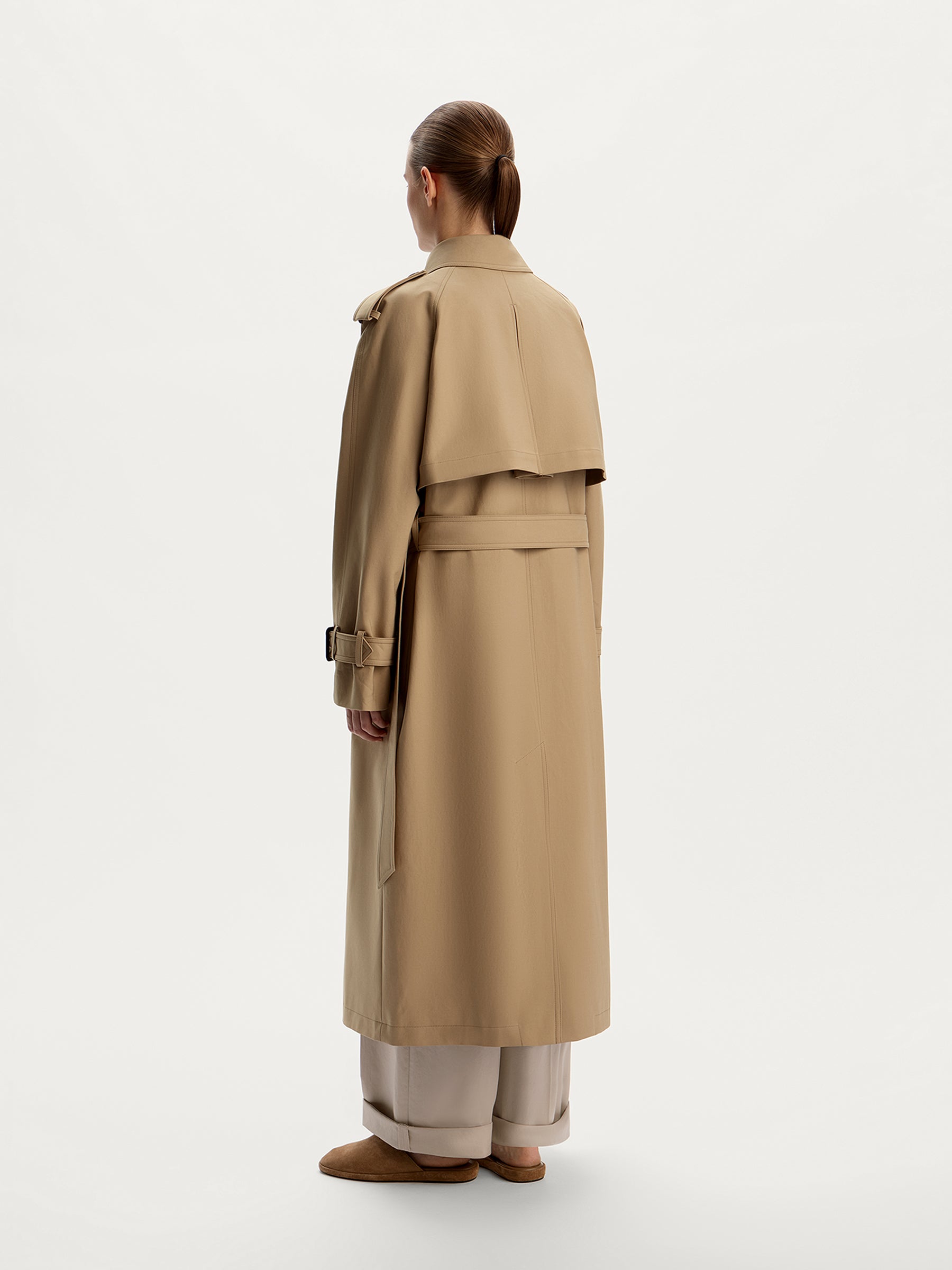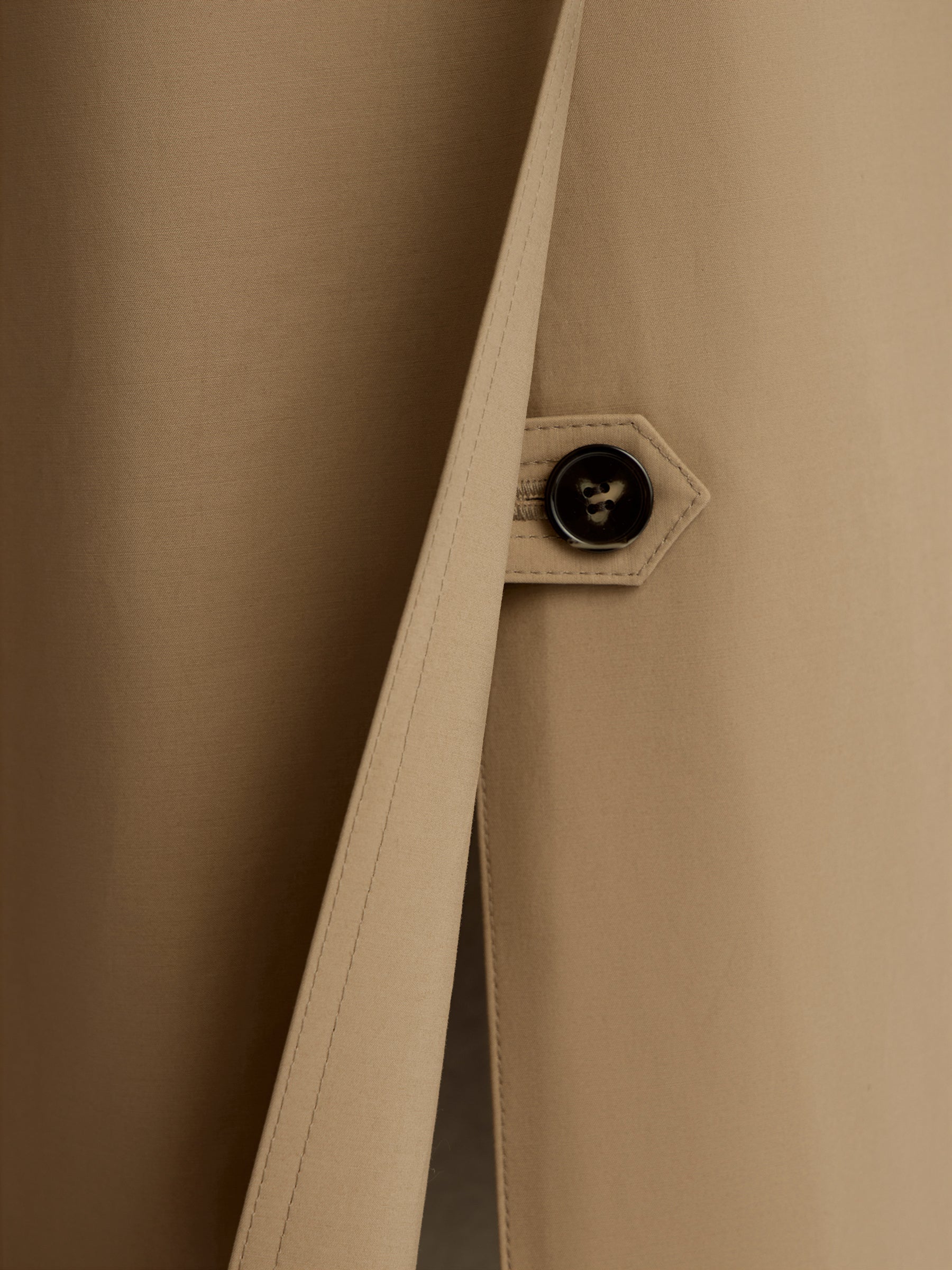 A bestseller for a reason — this trench boasts a long, wide silhouette with epaulettes and a soft raglan shoulder for a subtle vintage touch. Crafted from premium Italian cotton with a light water-repellent finish, it’s detailed with a wide back yoke and leather-trimmed buckles. A hint of elastane keeps the fabric practical and easy to care for, while the silky lining ensures comfort.