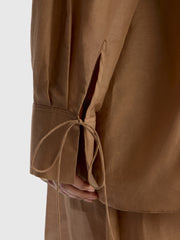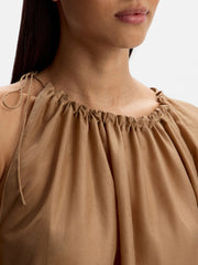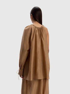 An airy, asymmetrical blouse crafted from semi-sheer cotton-silk. The gathered neckline features an adjustable drawstring, so you can control the silhouette. Complete the look with the matching 12 STOREEZ trousers or skirt.