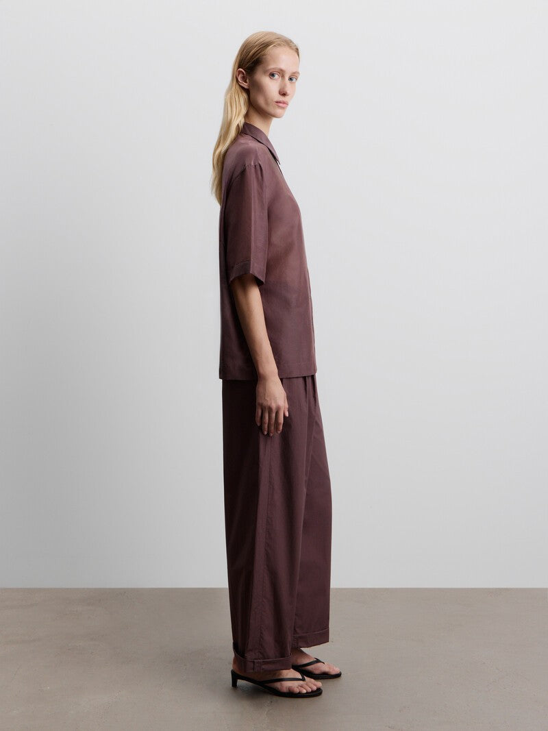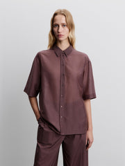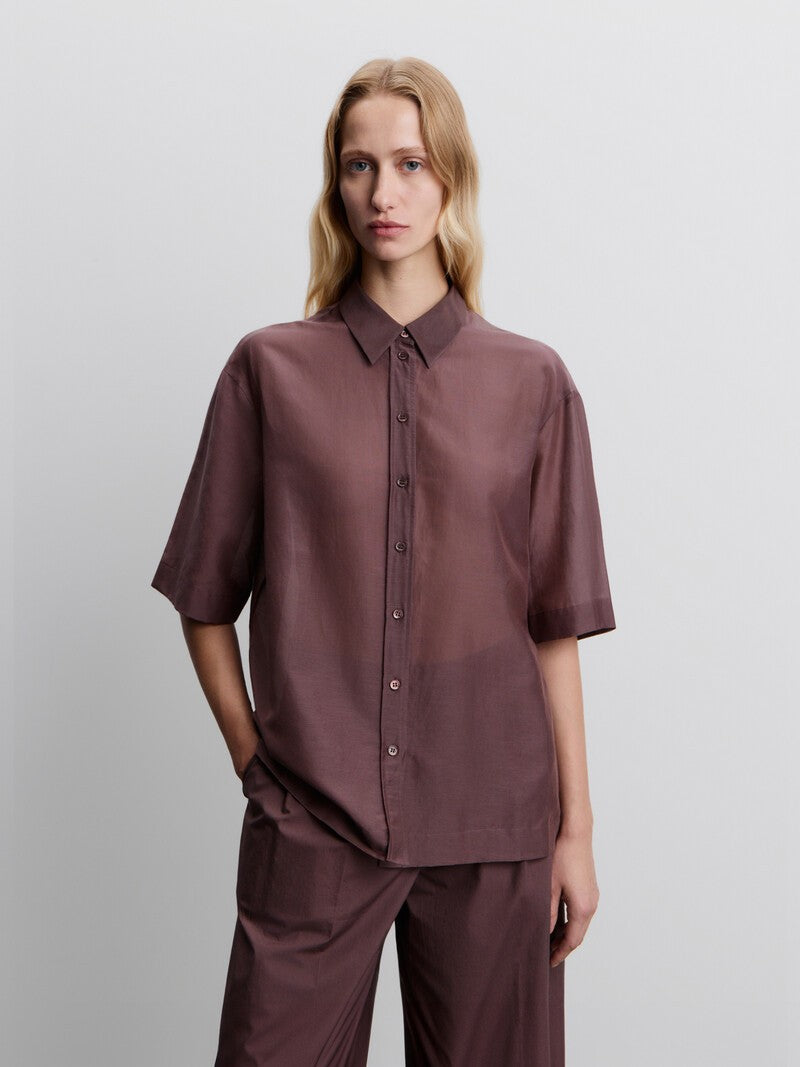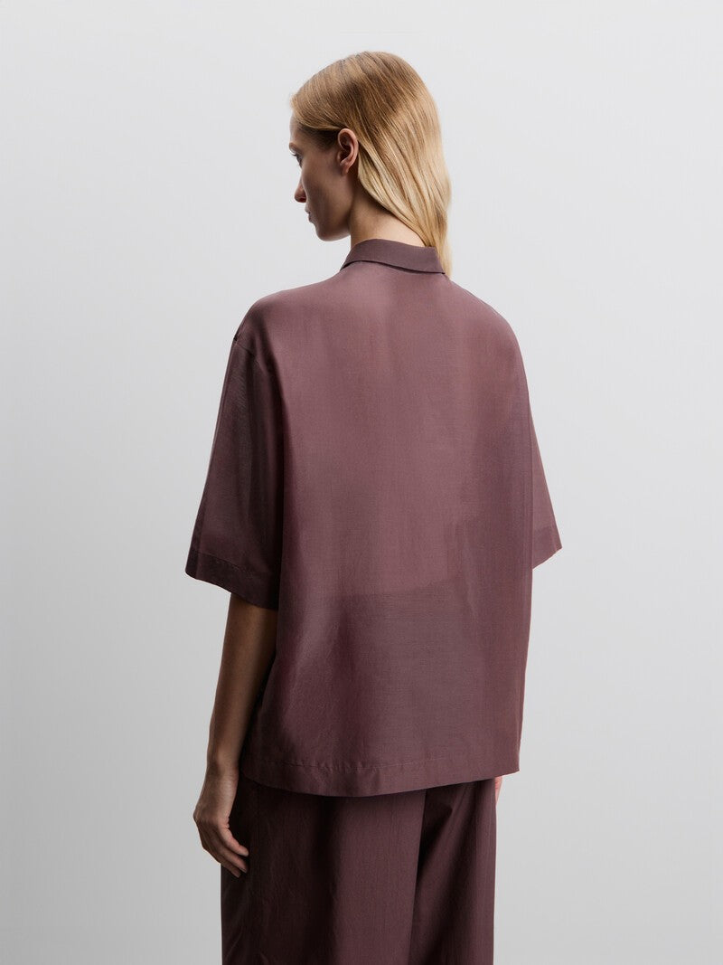 Your go-to for warm days, this shirt is crafted from a semi-sheer blend of cotton and silk, offering breathable comfort and a subtle sheen. Designed in a relaxed silhouette with dropped shoulders, it's perfect for layering over tanks and T-shirts.