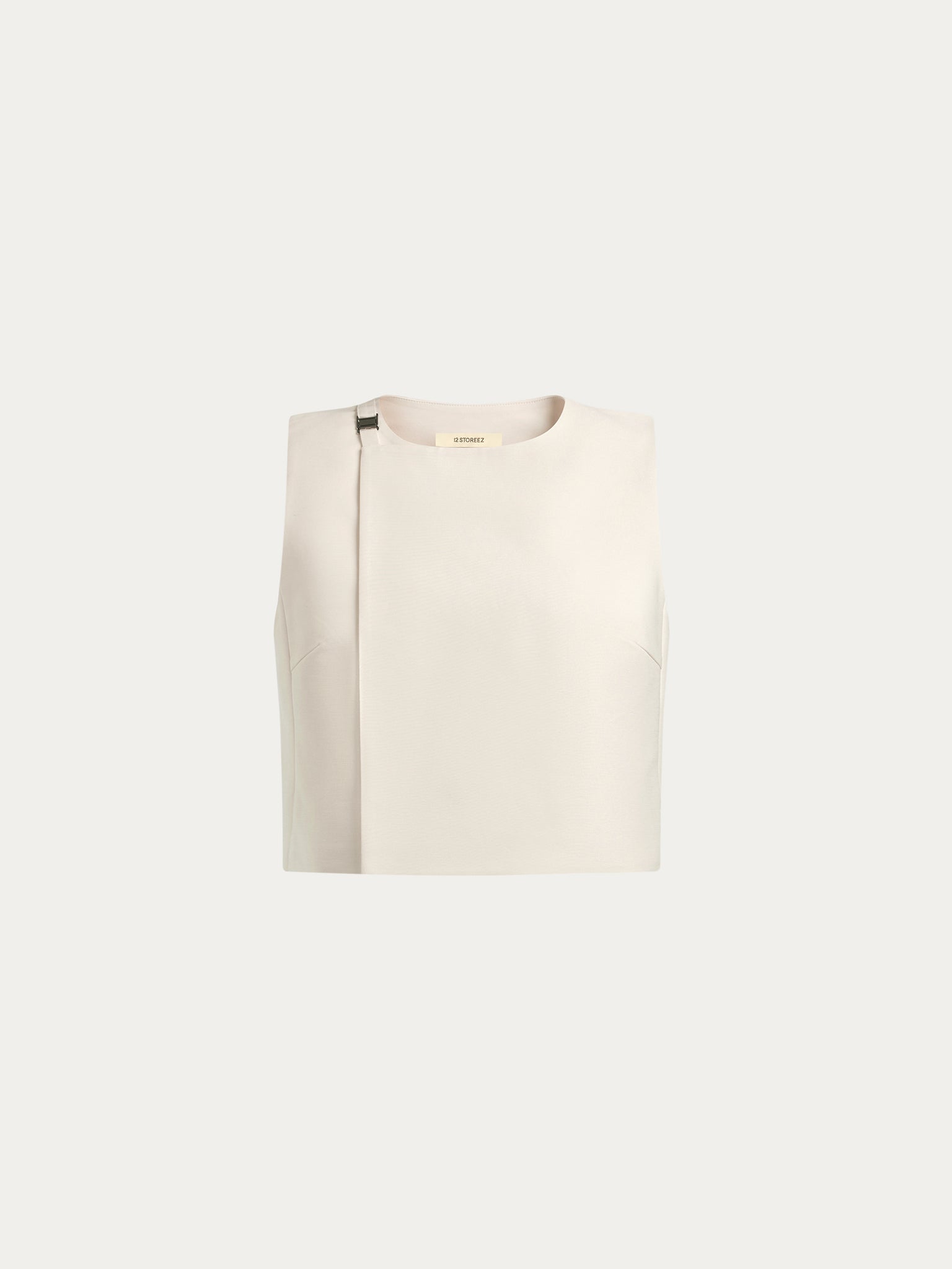 A modern spin on the classic waistcoat, this top is crafted from dense cotton with a clean, understated silhouette. Featuring concealed snap buttons and a side buckle strap for a polished finish, it’s blended with elastane for a flattering fit and minimal wrinkling. Complete the set with the matching 12 STOREEZ trousers.