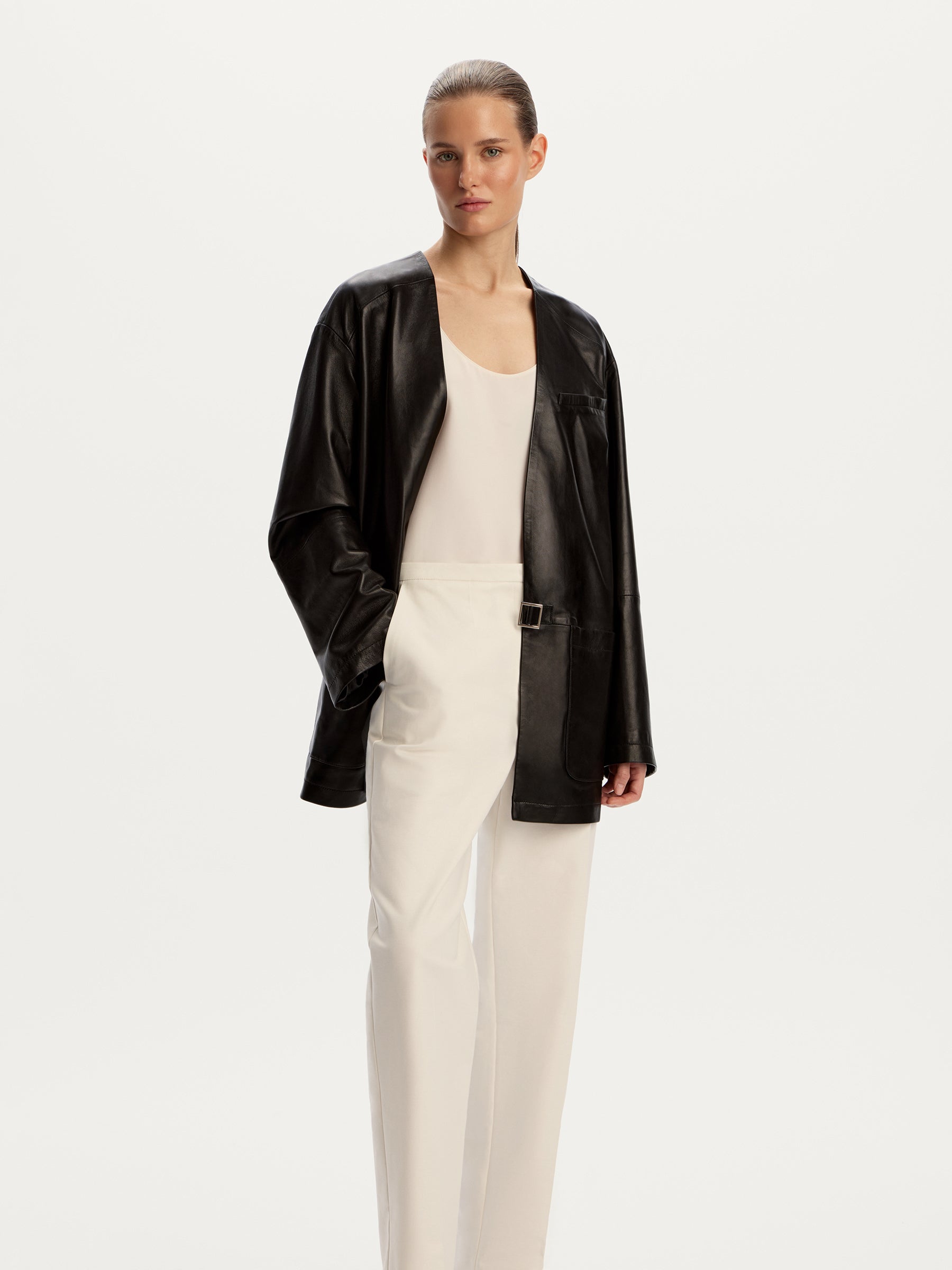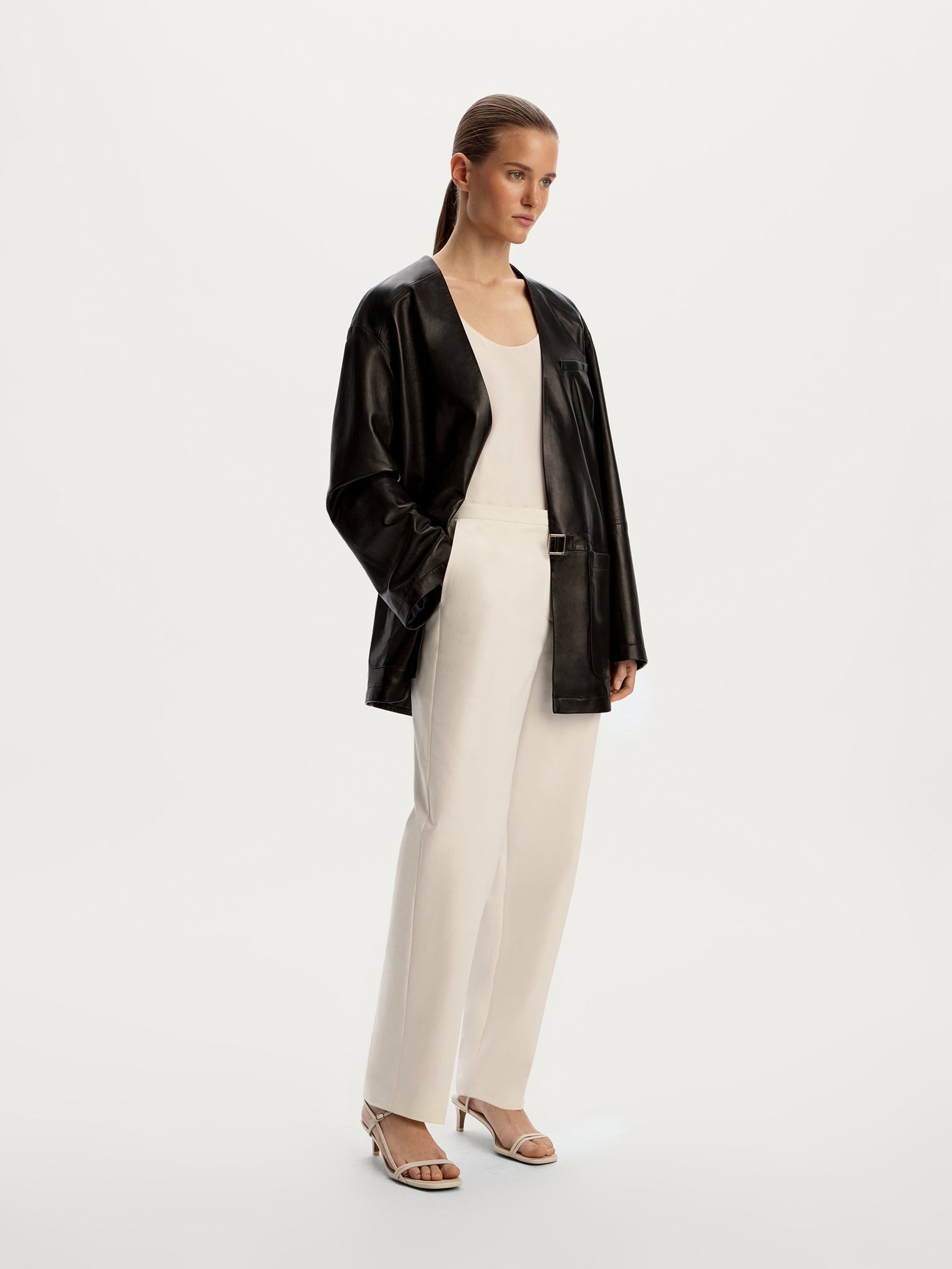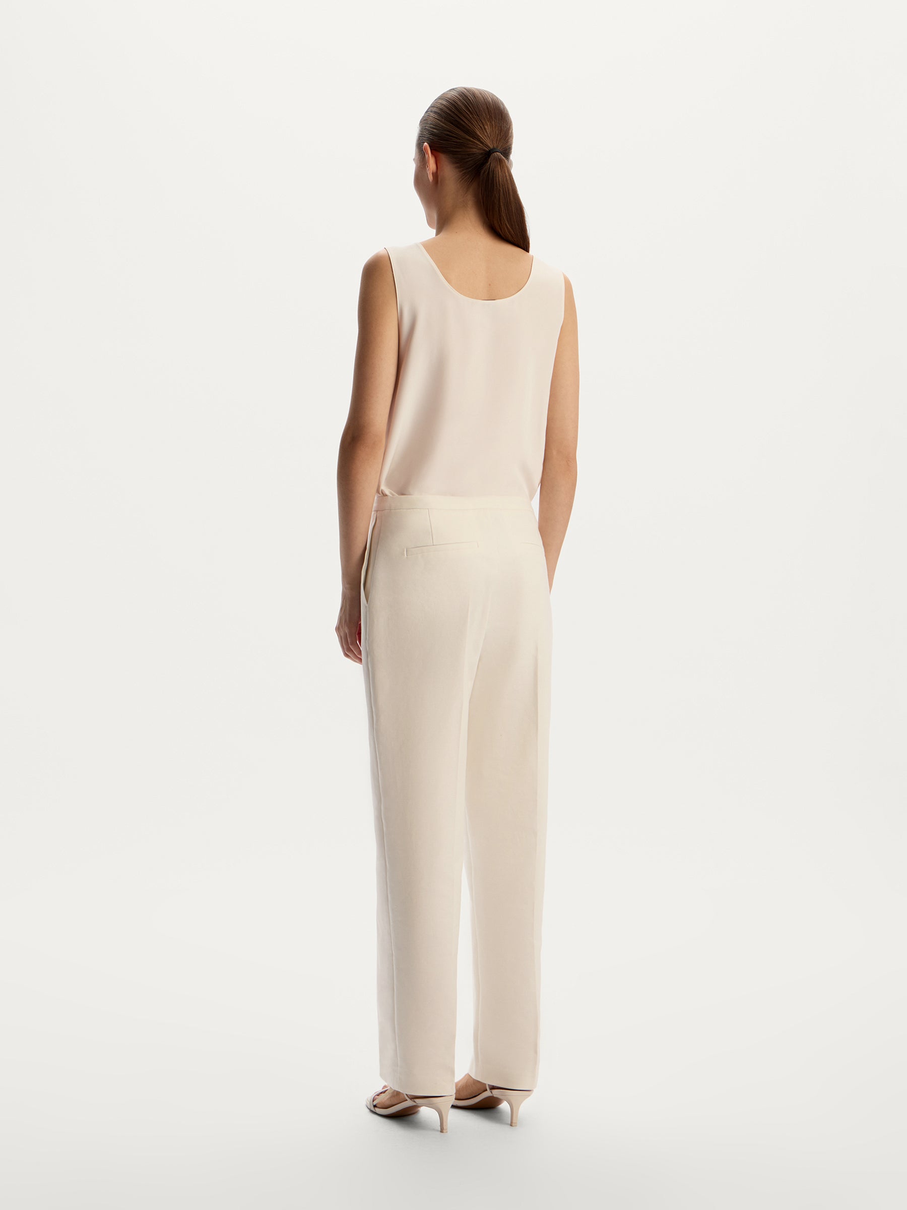 A flattering wardrobe staple, these straight-leg trousers sit at a mid rise with pressed creases to elongate your silhouette. Crafted from a dense cotton-elastane blend, they deliver a clean, polished look & perfect as a set with the matching 12 STOREEZ top or styled on their own.