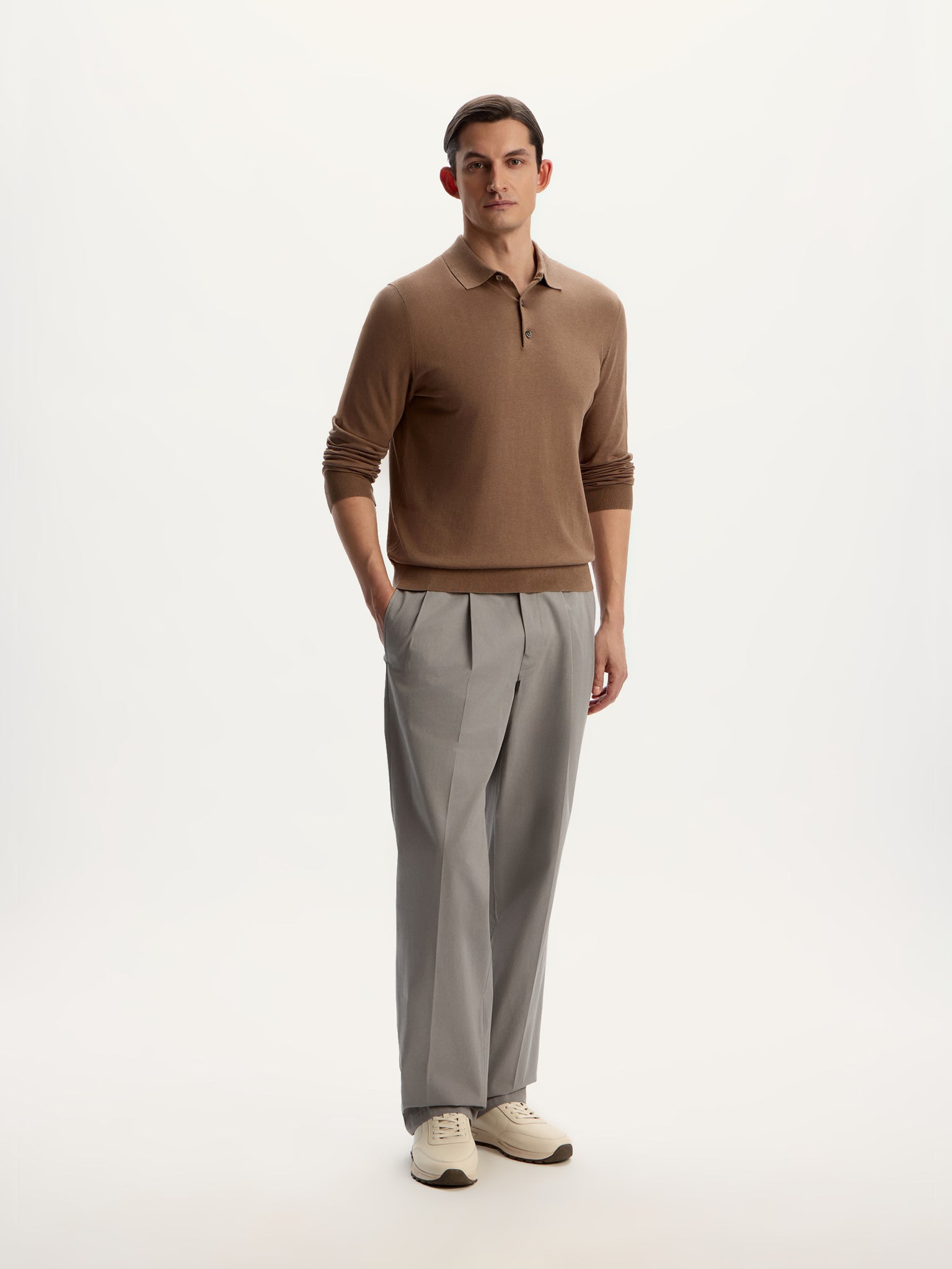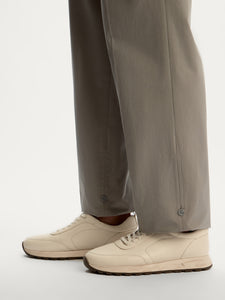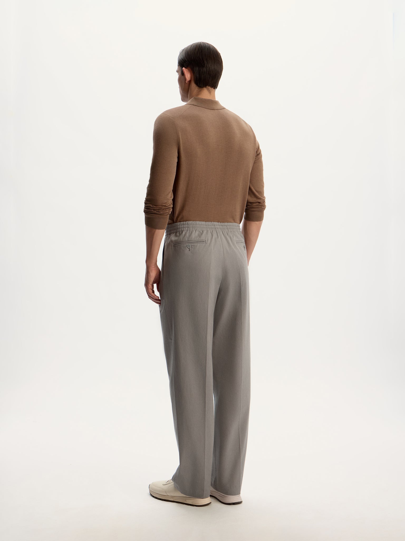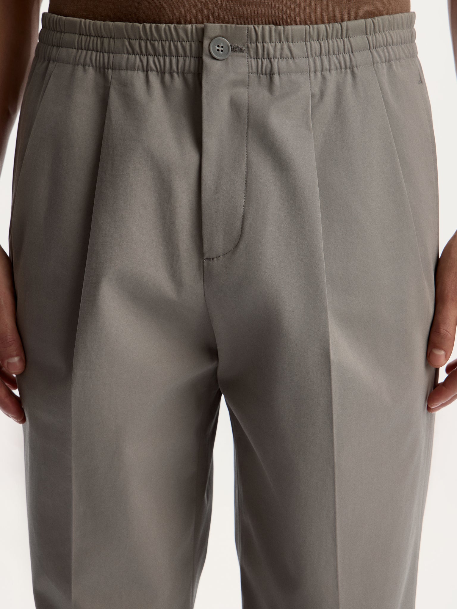 A practical interpretation of a polished silhouette, these trousers are crafted from Italian cotton in a slightly tapered fit that'll suit both vacation and office looks. The elastic waistband adds comfort while the subtle satin lustre of the fabric brings the perfect finishing touch.