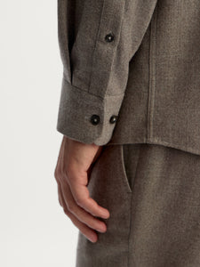 A relaxed and warm staple, this shirt is crafted from merino wool flannel by Drago. Italy, boasting an extra soft touch and durability. The material has been treated with a special coating that protects wool from moisture and dust. Complete your look with the matching trousers from the capsule.