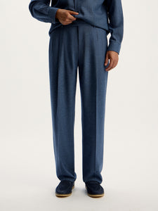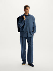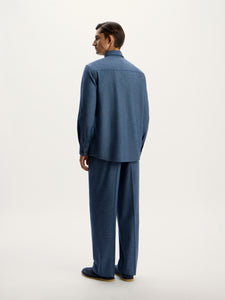 A classic wide-leg pair, these trousers are crafted from merino wool flannel by Drago. Italy, boasting an extra soft touch and durability. The material has been treated with a special coating that protects wool from moisture and dust. Complete the look with the matching shirt from the capsule.