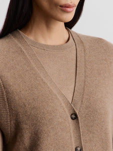 With a hint of vintage and a subtle masculine feel, this vest is knitted in two strands of soft Mongolian cashmere. The relaxed fit and warm, lightweight texture make it a comforting choice for cold days. Complete the set with the matching 12 STOREEZ trousers.