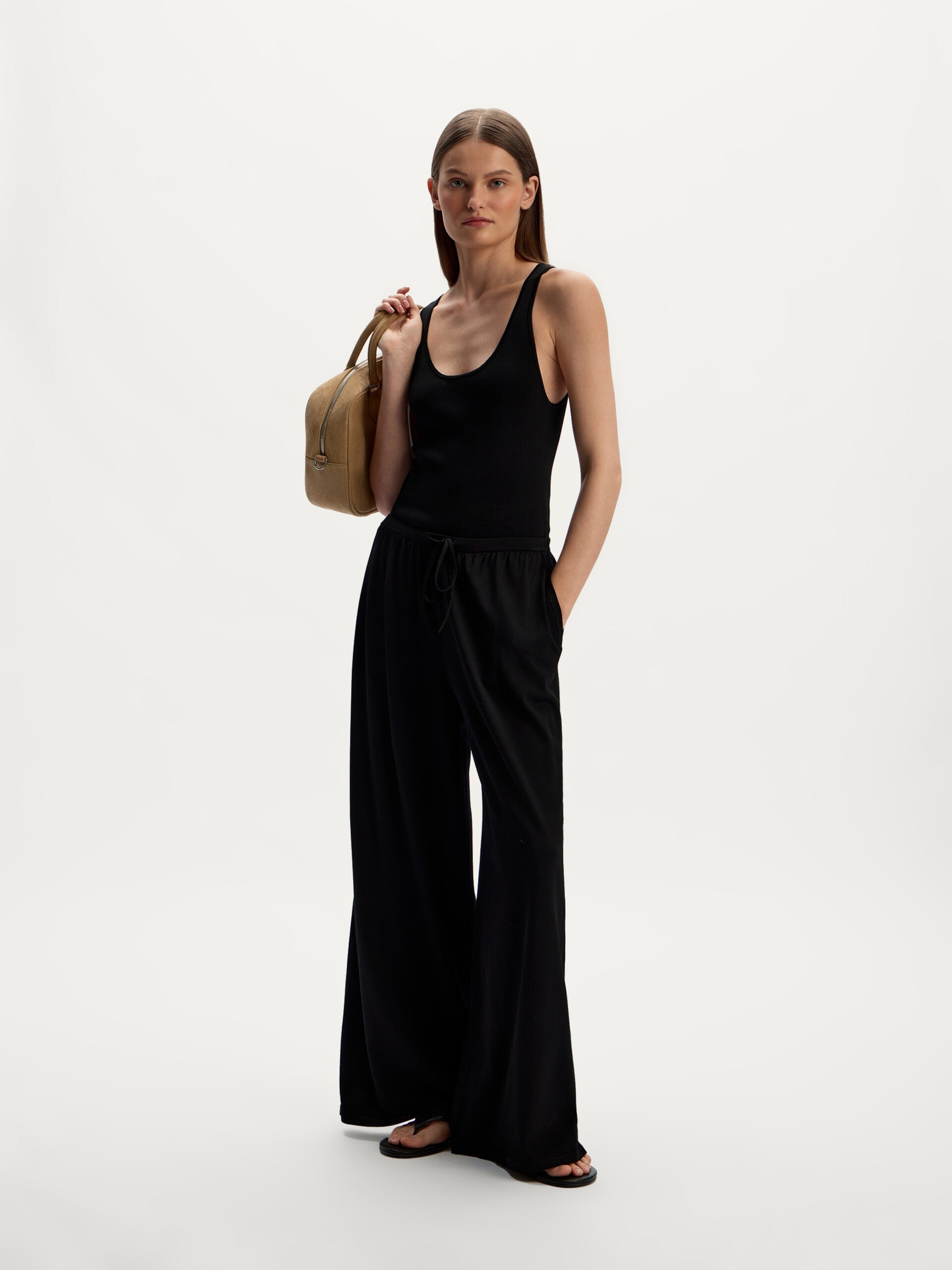 A wardrobe essential, this top features a versatile fit with a round neckline and can be tucked into trousers or left untucked. Crafted from smooth, lightweight, and durable viscose-polyamide knit, it comfortably hugs the body and holds its shape, making it perfect not just for holidays, but for everyday wear too.