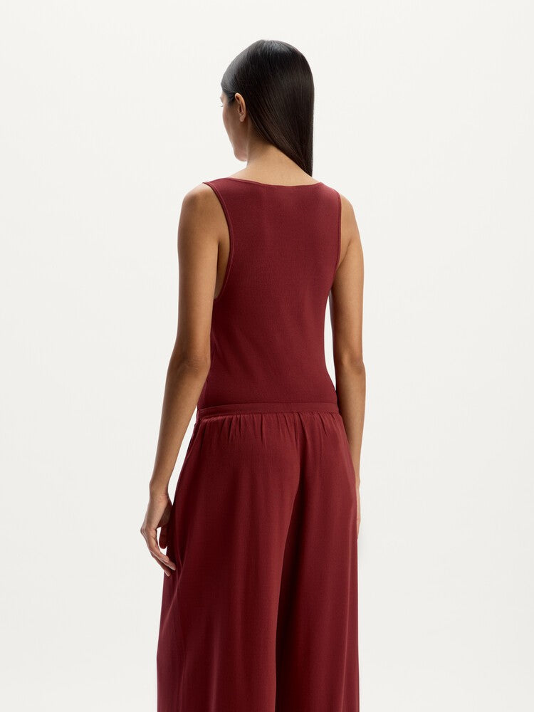 A wardrobe essential, this top features a versatile fit with a round neckline and can be tucked into trousers or left untucked. Crafted from smooth, lightweight, and durable viscose-polyamide knit, it comfortably hugs the body and holds its shape, making it perfect not just for holidays, but for everyday wear too.