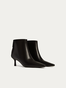 An elegant addition to your outfits during colder months, these ankle boots are crafted from soft. durable leather in a sleek design with elongated toes. The subtle zip at the heel lets you slip them on and off easily. Wear yours to the office, special occasions, and beyond.