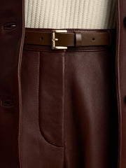 A sleek addition to dresses and shirts, this belt is crafted from durable, smooth leather with an 18mm width. The addition of a light-toned lining prevents colour transfer onto your clothing. Sold in the brand's signature box.