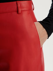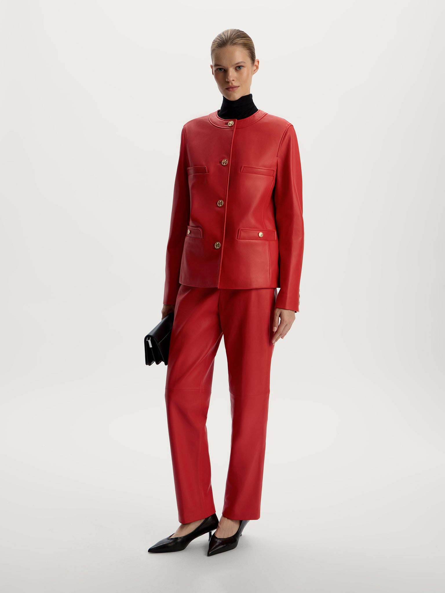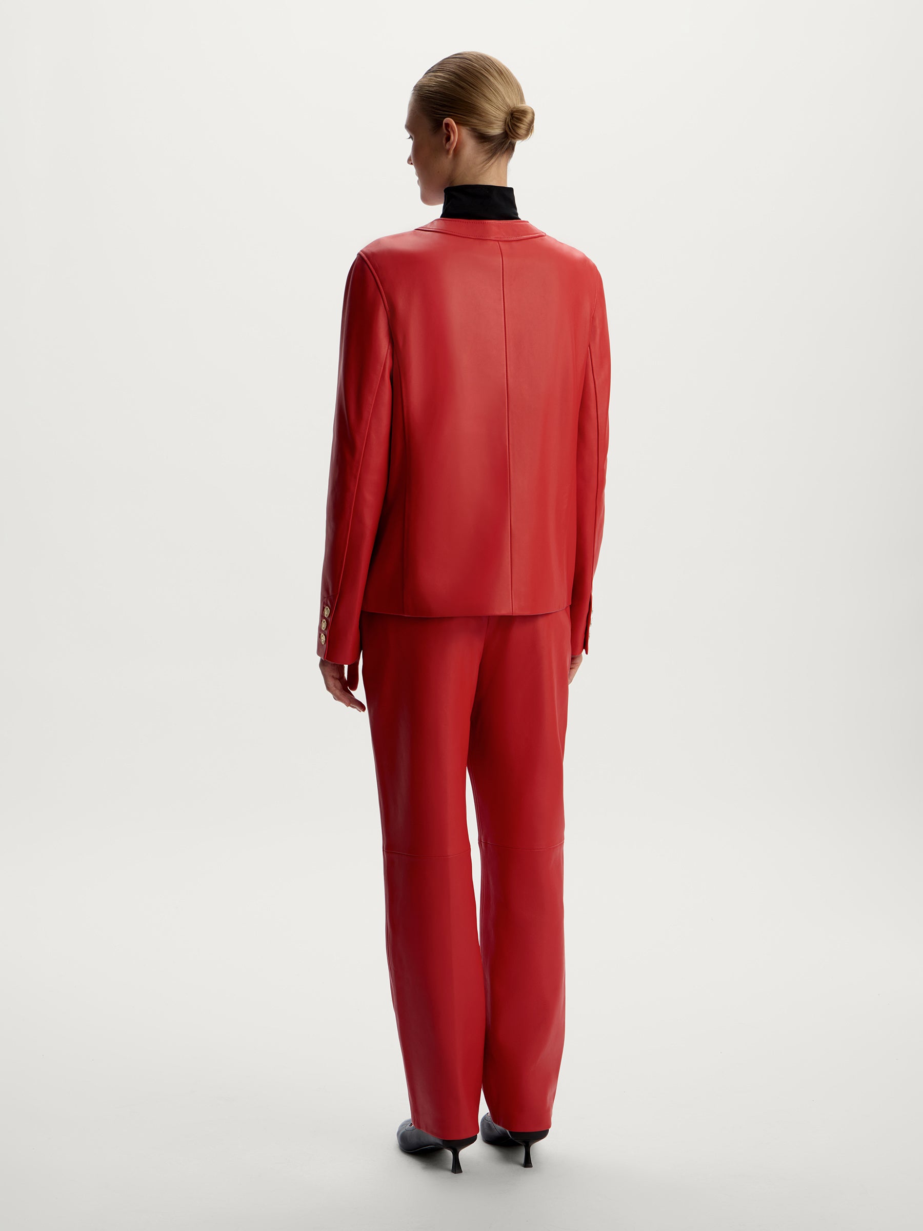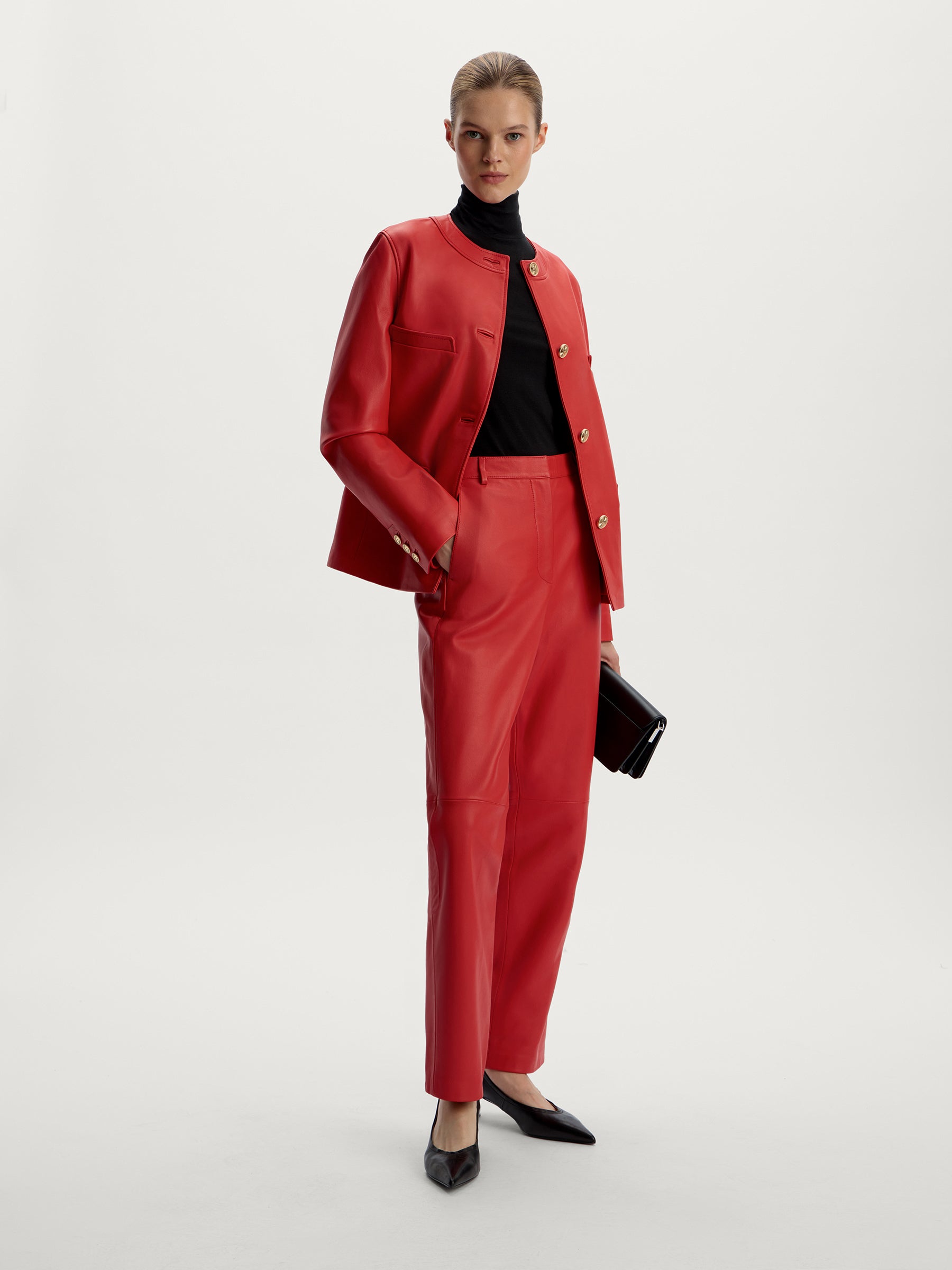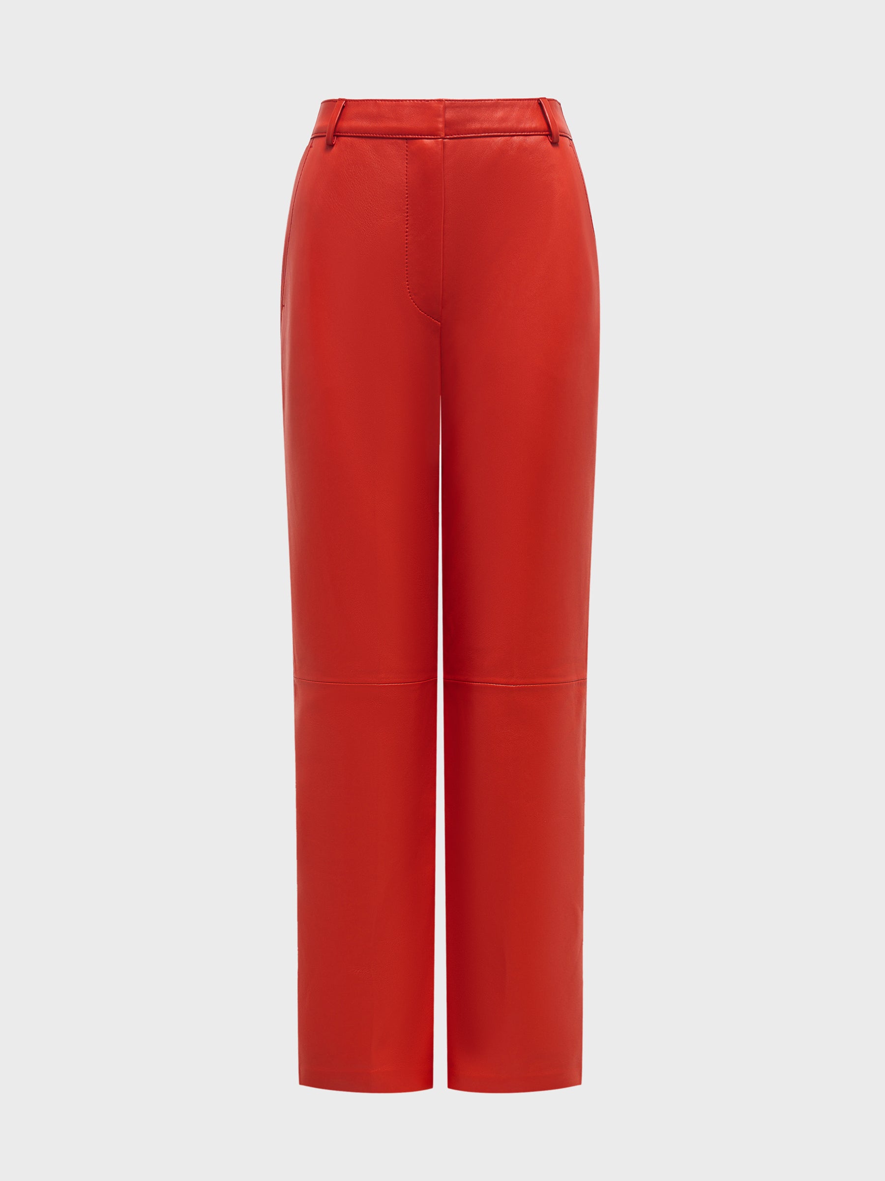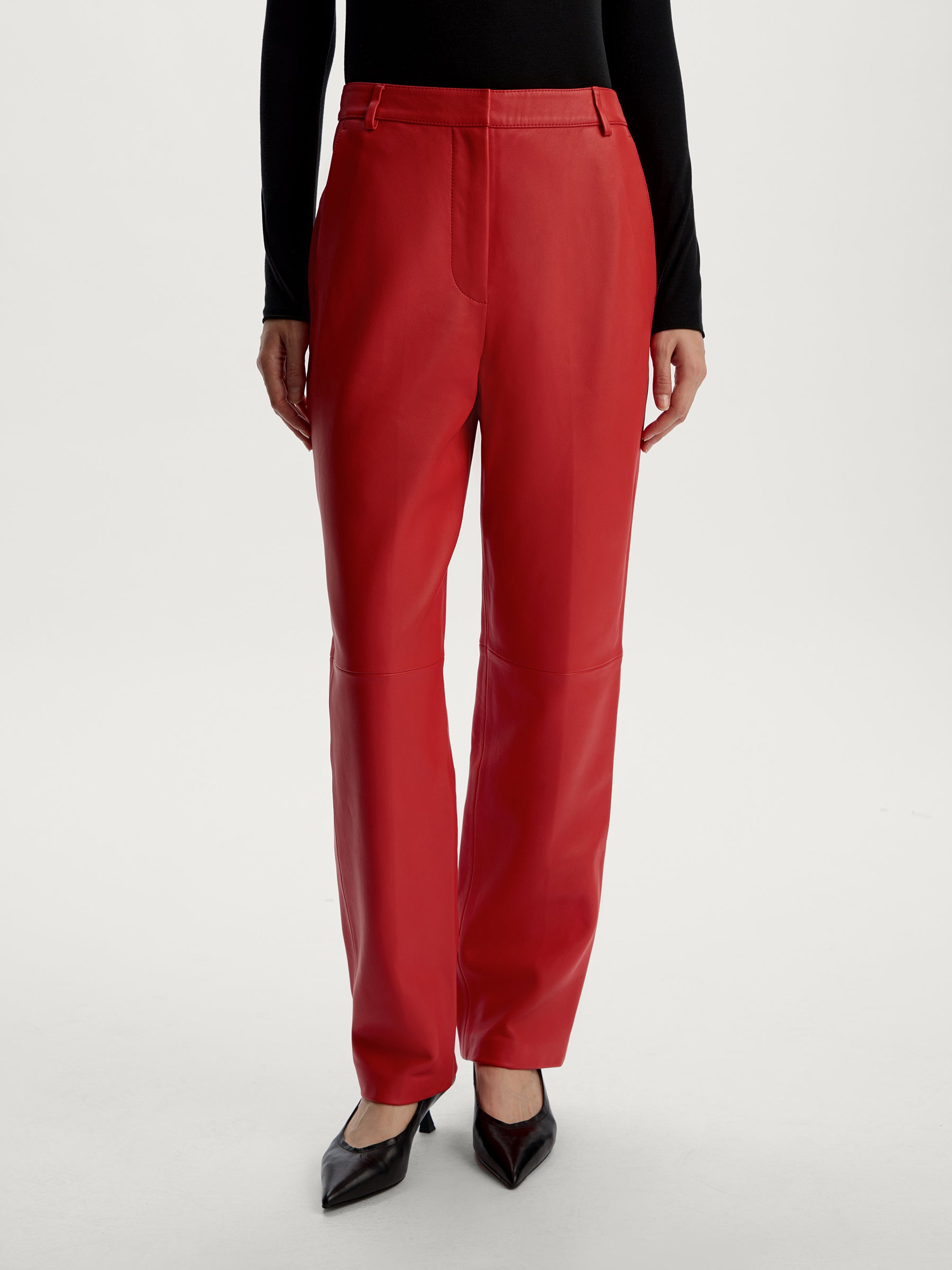 A 12 STOREEZ bestseller in an updated shade. These trousers are crafted from sleek leather in a straight-leg silhouette with pressed creases and seams at the knees that prevent the garment from stretching out. Complete the set with the matching jacket from the capsule.