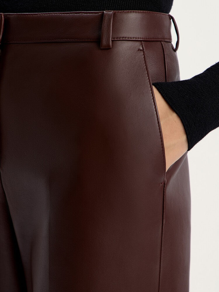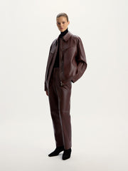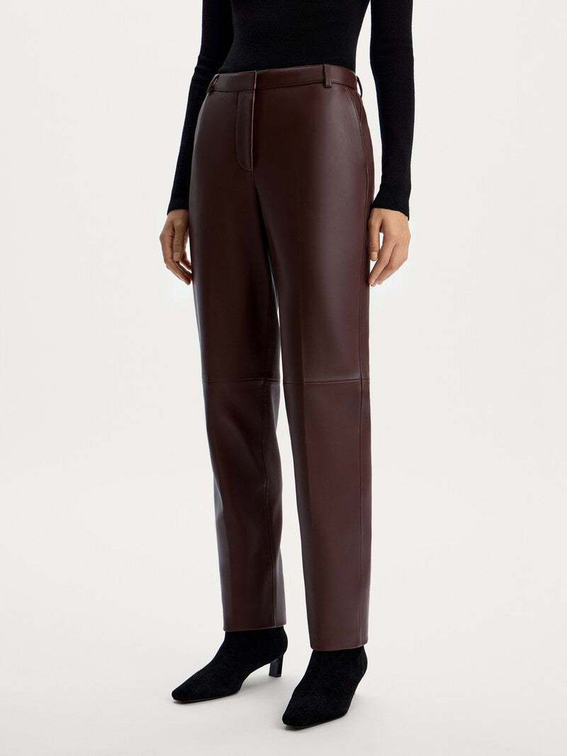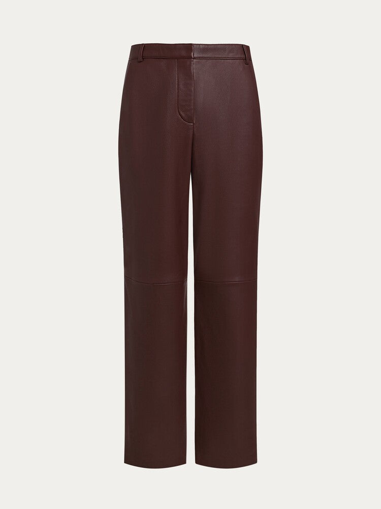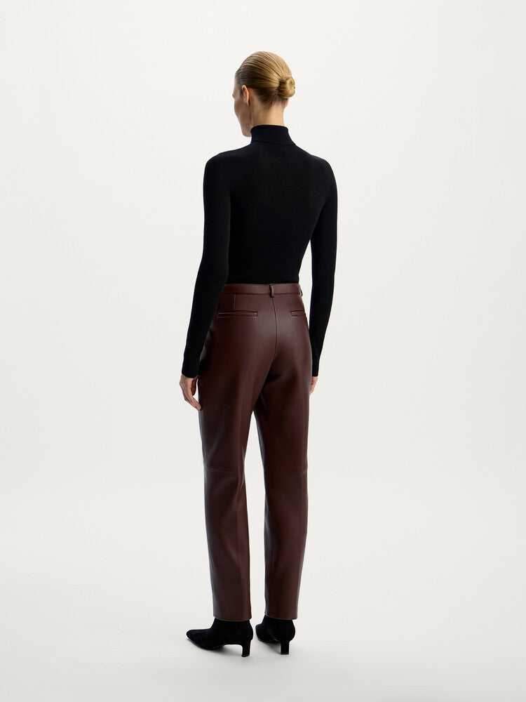 A timeless classic, these trousers are crafted from sleek leather in a straight-leg silhouette with pressed creases and seams at the knees that prevent the garment from stretching out. The leather is minimally treated to preserve its natural texture and quality.