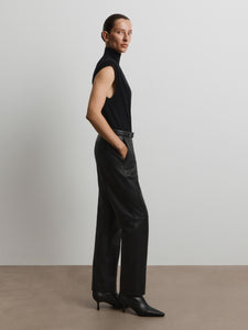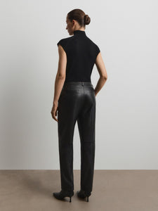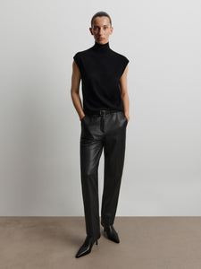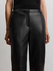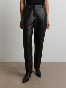 Tailored from soft genuine leather, these classic trousers with pressed creases are designed to stay in your wardrobe for years to come. The leather is minimally processed to preserve its natural strength and texture, while a stretch lining protects it from deformation and stains.