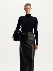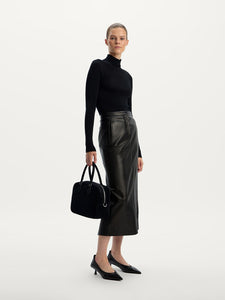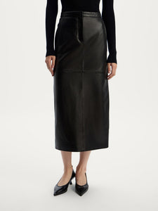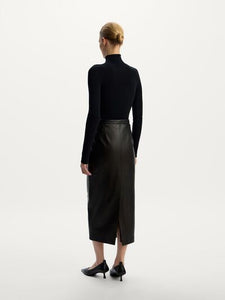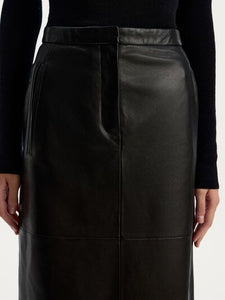 A straight-cut maxi silhouette in leather, this skirt is a timeless addition to your wardrobe. The fine, supple leather is dyed using plant and herb extracts and is complemented by a stretchy lining. Certified with Gold LWG status, recognising responsible leather manufacturing.