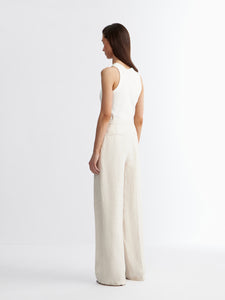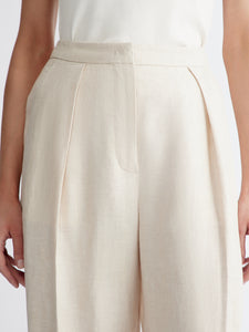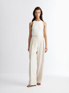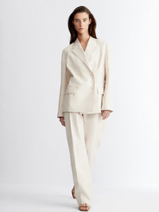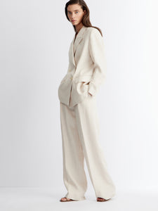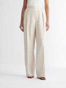 A tailored pair for the summer, these trousers are crafted from herringbone linen with a subtle sheen, featuring a classic straight-leg silhouette with waist pleats and creases. Complete the coordinated look with the matching blazer from the capsule.
