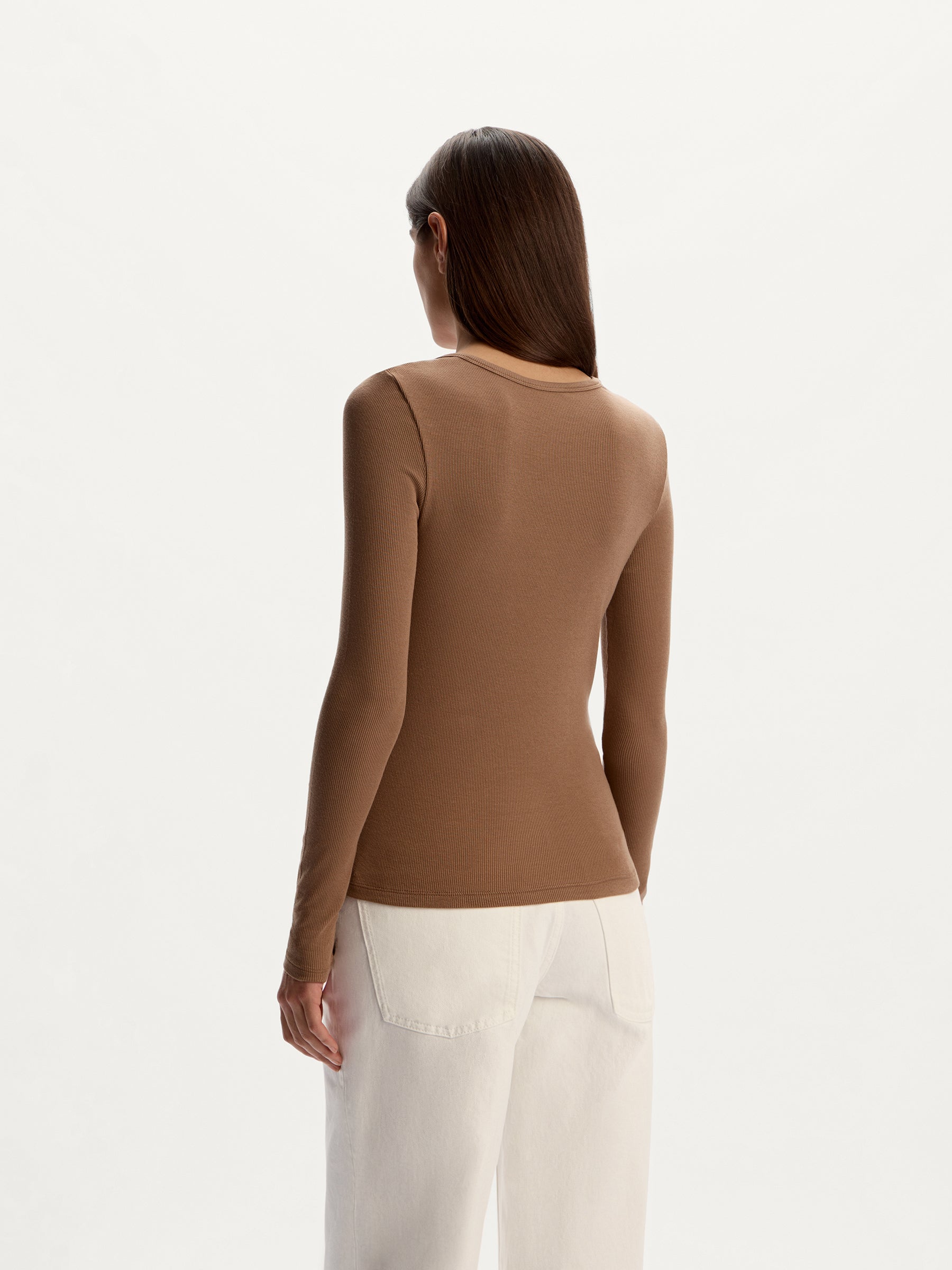 A tactile base layer, this top is crafted from soft lyocell fibres — an eco-friendly alternative to viscose. The fabric gently contours your curves and lets your skin breathe, while a touch of elastane ensures it keeps its shape. Style yours with jeans for the day and a sleek skirt for the night.